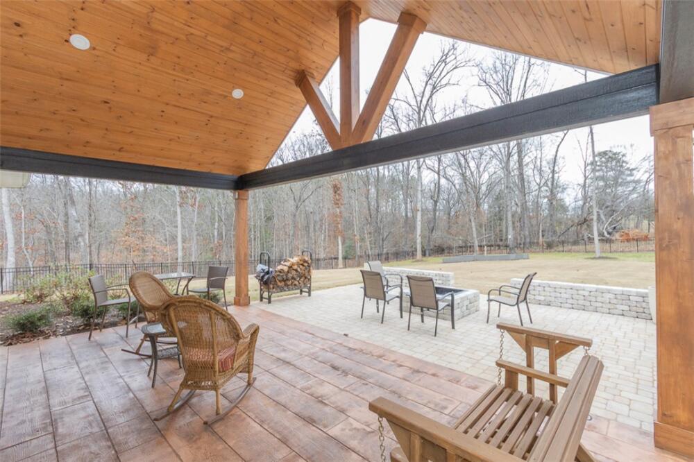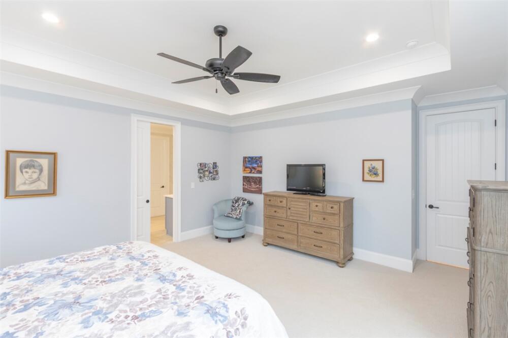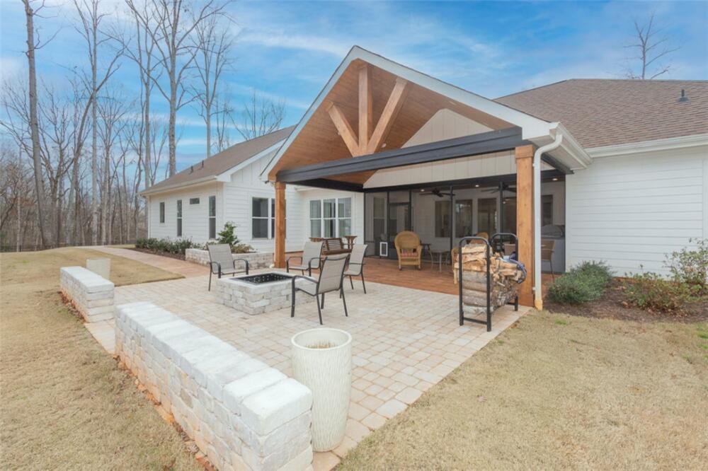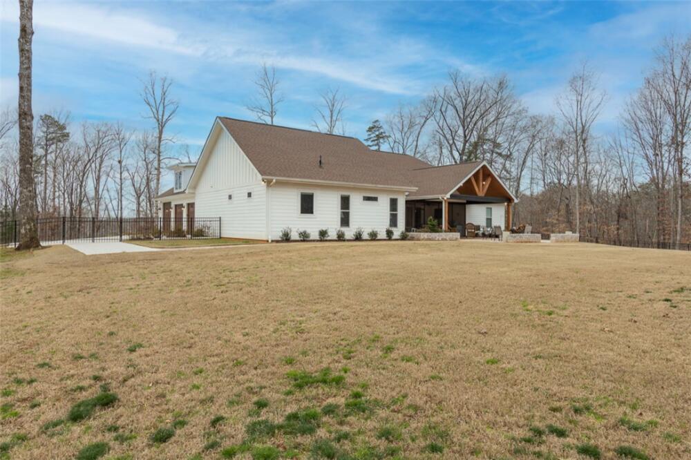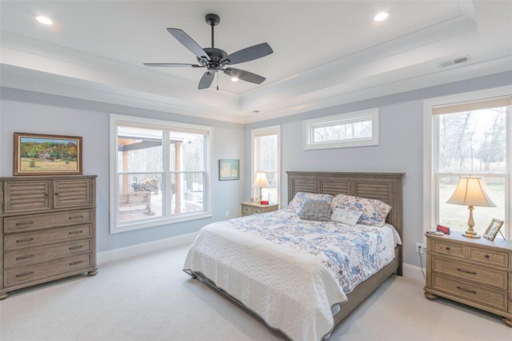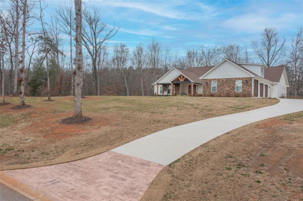 Single level traditional styled custom built home situated on 2.5 meticulous and private acres featuring seasonal views of Lake Hartwell. Local builder has provided exquisite detailing in this craftsman inspired home. Entry at the stamped concrete driveway leads to ample off street parking and side entry 3 car garage; complete with easy access side yard door. Hardscape pathway leads to front entrance covered porch with etched flooring and wood enhanced ceiling. Nature lovers will enjoy strolling around the landscaped grounds featuring black iron styled fencing, covered back porch with woodplank styled concrete flooring and soaring wood trimmed ceiling and beams. Step out onto the sunlite paver patio w/ firepit area. Beautiful mature trees surround this serene property on all 3 sides. Stepping into the foyer one will notice all the custom details throughout the main living areas. Open style is perfect for entertaining with the soaring ceiling wood beamed living room finished w/ stone enhanced gas log fireplace. Elegantly detailed kitchen with its upgraded stainless appliances: 6 burner gas stove with hooded vent, wall oven and microwave, sink with instant hot water and fabulous walk in storage pantry. Enjoy food prep as you chat w/ people whether seated at quartz topped bar or in the adjourning dining area. Mud room styled transition area leads to 1/2 bathroom and flows intto the oversized walkin laundry room with sink and an abundance of cabinet storage. WOW......will be the reaction to the primary bedroom ensuite. Warm carpeted flooring, multitude of windows, trey ceiling as well as professionally styled walk in closet. Tiled bathroom retreat with double sinked vanity area, sit down mirrored make up station and tiled oversized walk in shower. Glass doored office/flex room with ceiling and wall detailed trim. Popular and private split bedroom plan each sharing the spa like full bathroom; double sinks, doored toilet area and magnificent large walk in shower. One bedroom has its own personal access to the bathroom. Main living areas are finished with easy to maintain hard flooring either tile or LVP. Three car garage interior is amply sized for allowing yard equipment storage and cabinetry space. Topsail Bay is a lake front community with low annual HOA fee, neighborhood restrictions and is a short drive to public boat launches and water enjoyment. Close by is Clemson University and a multitude of small towns with which to enjoy restaurants and social ammenities.