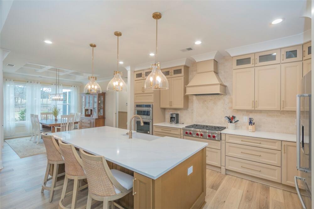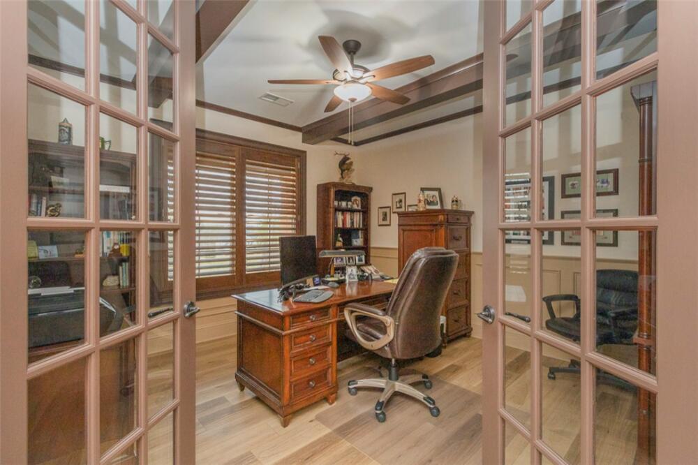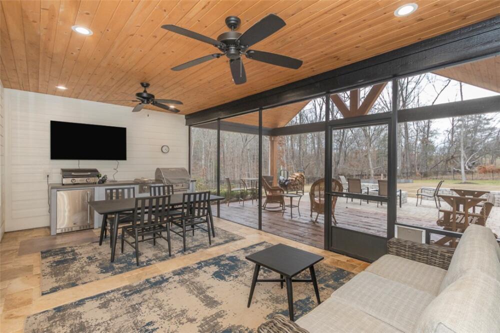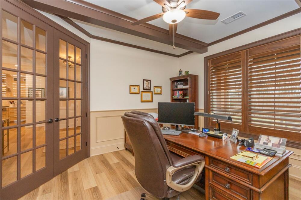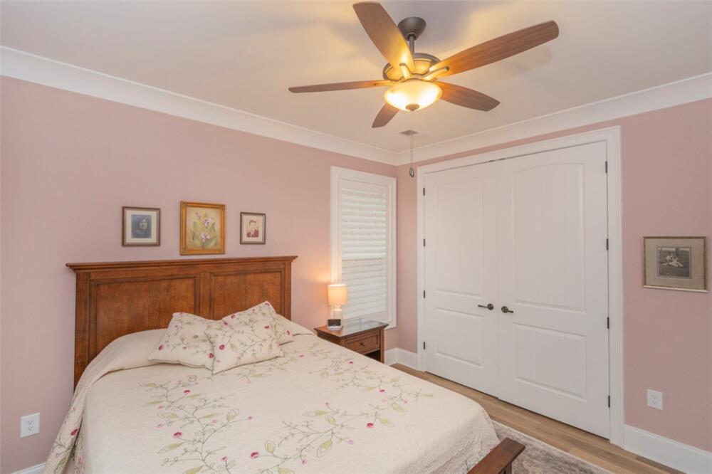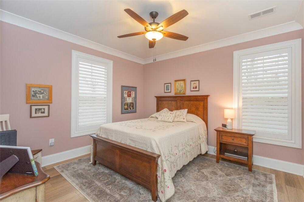 Single level traditional styled custom built home situated on 2.5 meticulous and private acres featuring seasonal views of Lake Hartwell. Local builder has provided exquisite detailing in this craftsman inspired home. Entry at the stamped concrete driveway leads to ample off street parking and side entry 3 car garage; complete with easy access side yard door. Hardscape pathway leads to front entrance covered porch with etched flooring and wood enhanced ceiling. Nature lovers will enjoy strolling around the landscaped grounds featuring black iron styled fencing, covered back porch with woodplank styled concrete flooring and soaring wood trimmed ceiling and beams. Step out onto the sunlite paver patio w/ firepit area. Beautiful mature trees surround this serene property on all 3 sides. Stepping into the foyer one will notice all the custom details throughout the main living areas. Open style is perfect for entertaining with the soaring ceiling wood beamed living room finished w/ stone enhanced gas log fireplace. Elegantly detailed kitchen with its upgraded stainless appliances: 6 burner gas stove with hooded vent, wall oven and microwave, sink with instant hot water and fabulous walk in storage pantry. Enjoy food prep as you chat w/ people whether seated at quartz topped bar or in the adjourning dining area. Mud room styled transition area leads to 1/2 bathroom and flows intto the oversized walkin laundry room with sink and an abundance of cabinet storage. WOW......will be the reaction to the primary bedroom ensuite. Warm carpeted flooring, multitude of windows, trey ceiling as well as professionally styled walk in closet. Tiled bathroom retreat with double sinked vanity area, sit down mirrored make up station and tiled oversized walk in shower. Glass doored office/flex room with ceiling and wall detailed trim. Popular and private split bedroom plan each sharing the spa like full bathroom; double sinks, doored toilet area and magnificent large walk in shower. One bedroom has its own personal access to the bathroom. Main living areas are finished with easy to maintain hard flooring either tile or LVP. Three car garage interior is amply sized for allowing yard equipment storage and cabinetry space. Topsail Bay is a lake front community with low annual HOA fee, neighborhood restrictions and is a short drive to public boat launches and water enjoyment. Close by is Clemson University and a multitude of small towns with which to enjoy restaurants and social ammenities.
