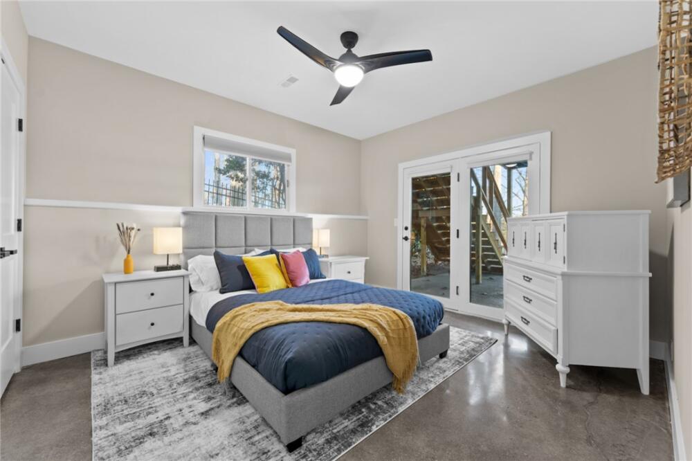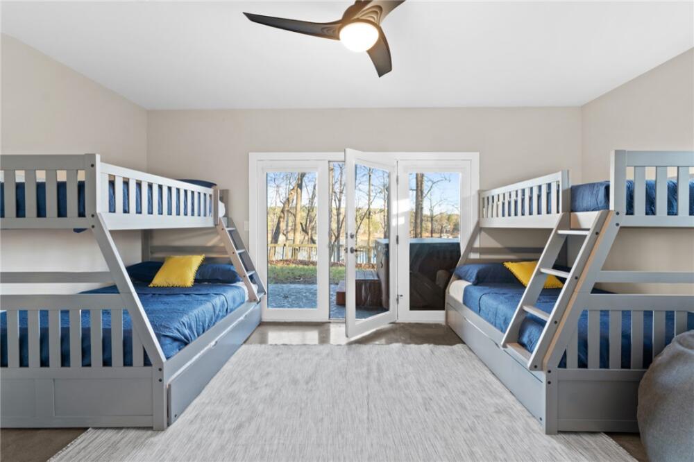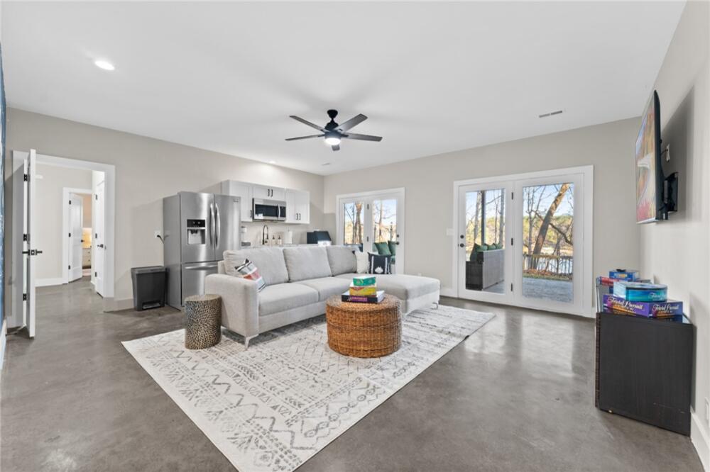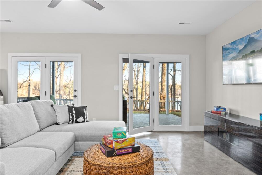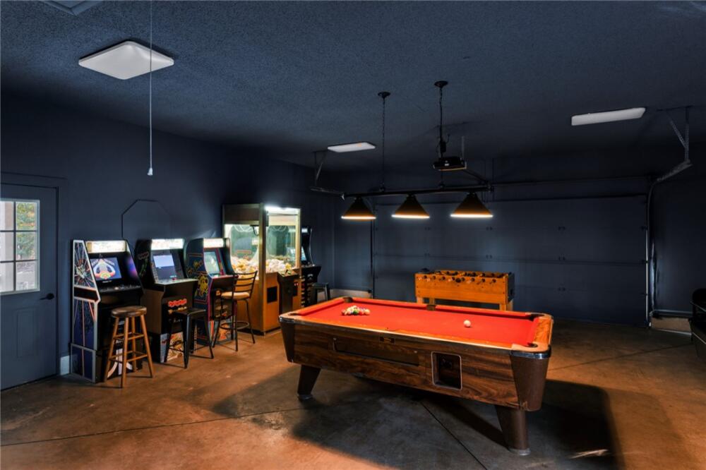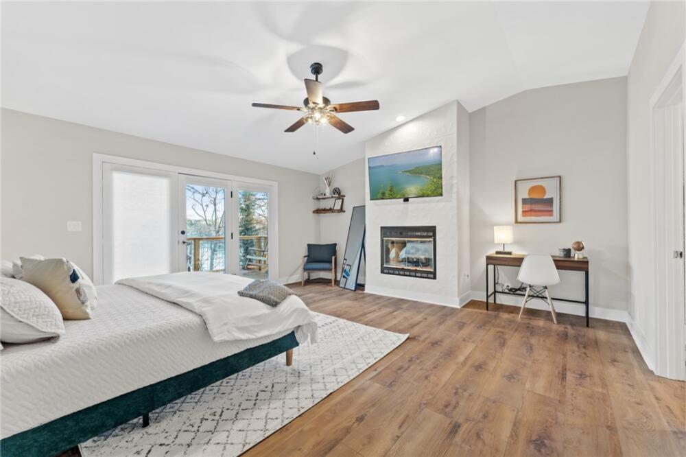 Ultimate Lakehouse! Turn-key short term rental or private oasis complete with full arcade! Live the ultimate lakefront luxury dream in this fully renovated, breathtaking 5-bedroom, 3.5-bathroom Lake Hartwell masterpiece, spanning 4,039 sq ft, plus a 630 sq ft ADU within a 1,800 sq ft detached garage. Set on a secluded 0.84-acre lot with 100 ft of deep-water frontage, this turnkey property is ready for an investment, complete with furniture, decorations, rugs, linens, kitchenware, and an entertainment-packed arcade featuring a claw machine, pool table, foosball, air hockey, and many classic arcade games. Fully modernized and renovated in 2022 with high-end finishes, a new roof and HVAC, and new decks and dock, this home offers breathtaking sunrise views through numerous lake-facing windows. Nestled in a quiet, family-friendly neighborhood with zero through traffic and a large, safe deep-water cove, it’s perfect for relaxation, entertaining, retirement or investment. Step into a spacious open-concept den (with a built-in reading nook), dining area, wet bar, and gourmet kitchen, where the entire exterior wall facing the lake is made almost completely of glass from top to bottom with skylights throughout, offering excellent lake views and natural light from inside the house and connecting to porches for even more stunning vistas. The kitchen boasts an eight-burner gas stove, double oven, large island, and ample storage. The converted two-car garage is now a full arcade with pool table, air hockey, foosball, claw machine, and classic arcade games. The huge primary suite features a king-size bed, private balcony, a large walk-in closet, and a very large and modern bathroom with a beautiful glass shower, stand-alone soaker tub, double vanity, and separate toilet room, all with soaring vaulted ceilings. A half bath, a very large screened porch with a swing, and a very large open porch complete the upstairs, all featuring vaulted ceilings for a spacious, airy feel, accessible via a new deck with a fun slide to the lower level. Zoom down the custom-built slide to the lake level for a burst of family fun. Enjoy a cozy second den with a smart TV and a kitchenette (sink, microwave, coffee maker, fridge, icemaker, cabinets), four bedrooms, two full bathrooms, a large linen closet, and a huge owner’s closet, all with unobstructed lake views through a mostly glass wall. Five glass doors open to an open-air covered porch with a newly refurbished hot tub featuring an easy-open cover, a large fire pit, a gas grill, and space for entertaining. Detached ADU (630 sq ft living space in 1,800 sq ft garage): A versatile retreat within an oversized garage with three roll-up doors, designed for an RV, yacht, multiple boats, or vehicles, with plenty of cabinet space. The ADU includes a full kitchen, dining area, and den downstairs, plus a full bathroom. Upstairs, a spacious living quarters with a large bedroom and closet offers privacy and comfort, ideal for guests or rental income. Enjoy a cocktail (or three) while relaxing and watching the sunset on the new deep-water dock, perfect for boating, fishing, or swimming, accessible via a concrete path. Relax by the fire pit, play cornhole, or entertain on the large, newly decked elevated porches with stunning lake views. The property’s numerous windows frame the serene cove and vibrant sunrises. A long concrete driveway and fenced yard ensure privacy and security in a quiet neighborhood with friendly neighbors, safe for kids. Steps from Stone Creek Cove Golf Course and Local Pub and Eatery (0.5 miles), 20 miles from Clemson University, and 13 miles from Anderson University. Situated on a quiet, deep-water cove with no through traffic, offering tranquility and safety. This is more than a home: you’ve hit the lottery with this turnkey VRBO investment and lakefront sanctuary where modern luxury meets timeless charm.
