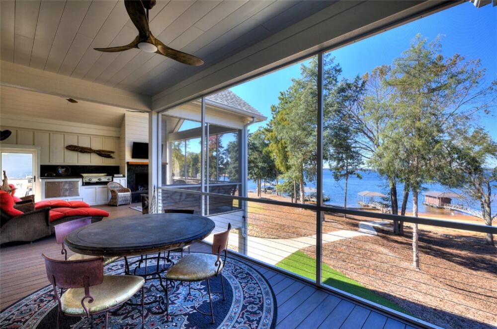 Experience lakefront living at its finest in this stunning modern farmhouse–inspired craftsman home on the shores of Lake Hartwell. Enjoy long-range views of Lake Hartwell on a flat, deep-water lot with a covered slip dock already in place. This property combines timeless design with upscale comfort and functionality. Step inside to find trim details, accent walls, shiplap finishes, tall doors, and soaring ceilings that create an airy, elegant atmosphere. The open-concept main level centers around a gas log fireplace, leading to a screened porch with a second gas fireplace and outdoor kitchen—ideal for entertaining year-round. The walkout basement offers additional living and recreation space, while the automatic backup generator ensures peace of mind. A concrete golf cart path leads directly to the lake for effortless lake access. This gated and fenced property also features a 30x40 detached garage/workshop with 14' ceiling —perfect for lake toys, tools, or extra storage.