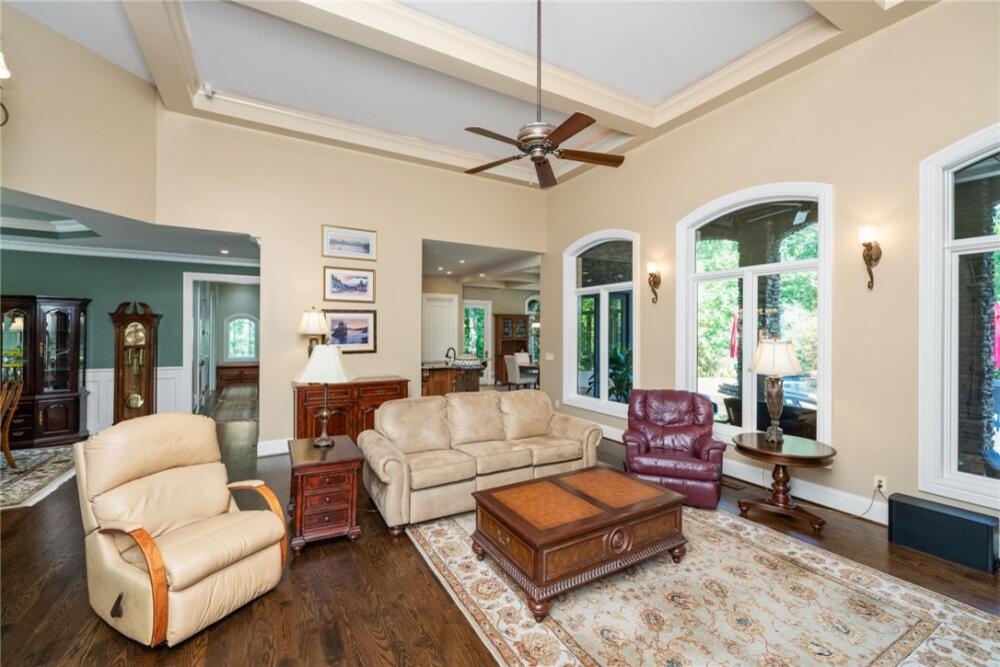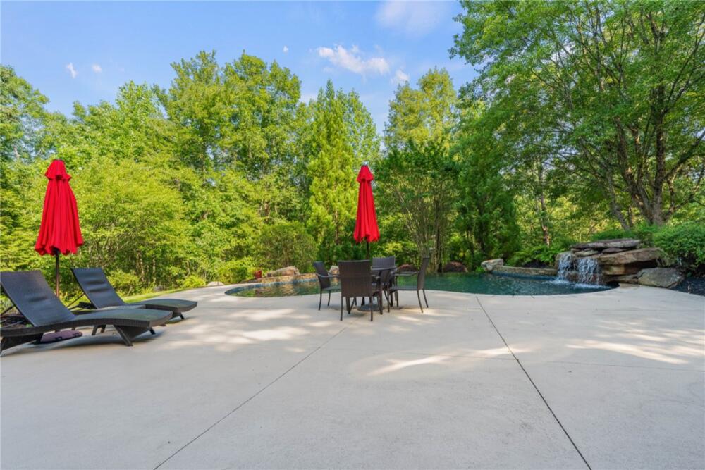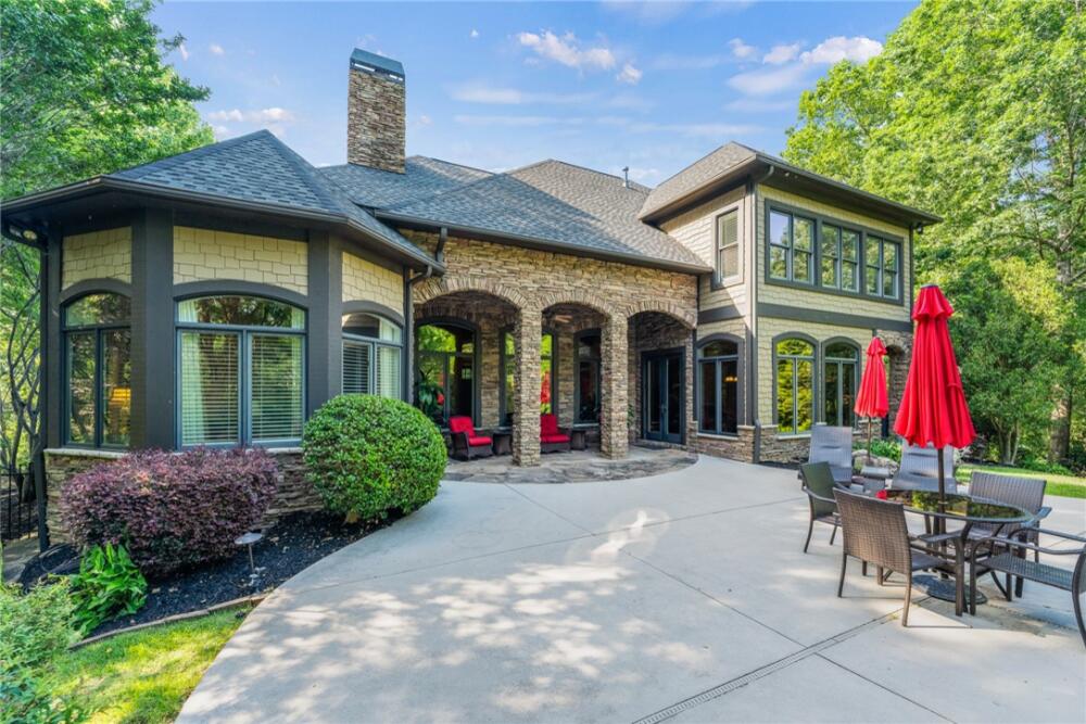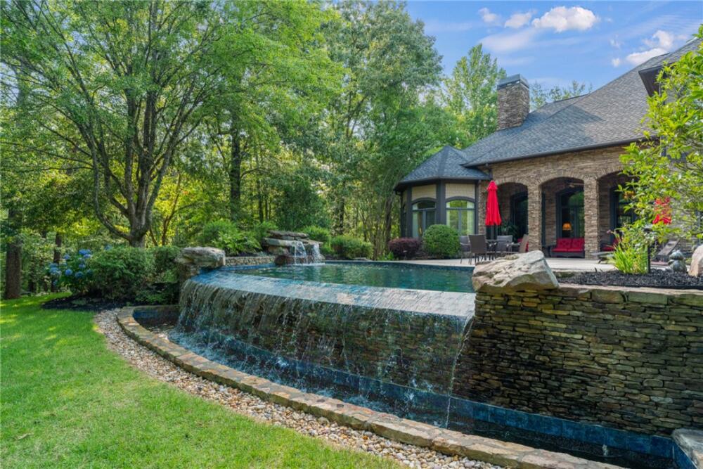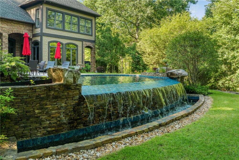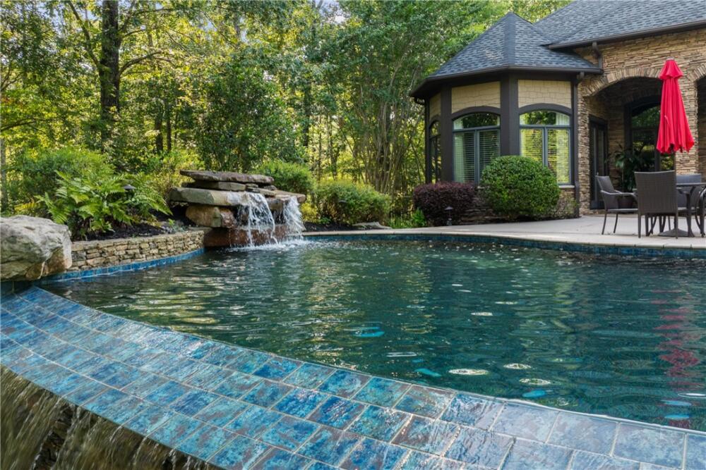 Welcome to 117 Summer Sweet Trail—a private four-acre retreat nestled within the prestigious Cliffs at Keowee Vineyards, where timeless elegance meets refined mountain living. Thoughtfully designed and meticulously maintained, this nearly 4,000-square-foot custom residence offers a seamless blend of luxury, comfort, and serenity in one of Lake Keowee’s most sought-after communities. A stately paver driveway and courtyard set the tone as you arrive to this very private location, leading into an inviting interior that exudes warmth and sophistication. The soaring great room, anchored by a striking two-story slate fireplace and framed with custom built-ins, is softened by ambient accent lighting—perfect for intimate evenings or lively entertaining. At the heart of the home lies a chef’s kitchen designed for both function and beauty. Granite countertops, a pot filler, dual ovens, two sinks, a gas cooktop, walk-in pantry, and a spacious prep island make this a dream for any culinary enthusiast. Adjacent, a casual dining space with coffered ceilings and French doors opens to your private outdoor sanctuary, while a formal dining room provides the perfect setting for more elegant occasions. The main-level primary suite is a peaceful haven featuring tray ceilings, a bay window, custom cabinets, private patio access, and a spa-like ensuite bath with a rainfall shower, dual handheld showerheads, a chroma-therapy jetted tub, and a generous walk-in closet. A dedicated office, complete with French doors, built-in shelving, and expansive windows, offers a quiet and inspiring space for work or reflection. Upstairs, three generously sized bedrooms provide ample accommodations for family and guests. One room is currently used as a fitness/bonus/media space, offering flexibility to suit your lifestyle. Two additional full baths ensure comfort and convenience. Step outside from the main floor level to your resort-style backyard, where an inground chlorine pool with vanishing edge appears to flow into the professionally landscaped setting. This is truly a hidden oasis only visible to the home owner and their guests; a luxurious spa-like experience with a covered veranda and built-in grilling station create the perfect setting for year-round outdoor living and entertaining. Additional highlights include a three-car garage, generator, three HVAC units, two tankless water heaters, a custom laundry room with built-in dog shower, central vacuum, landscape lighting and irrigation—every detail thoughtfully curated for effortless living. The location is also a benefit — with close access to 25 miles of trails, the equestrian center, easy access to the lake boat slips and the Lake House restaurant and out of the community via the gatehouse.