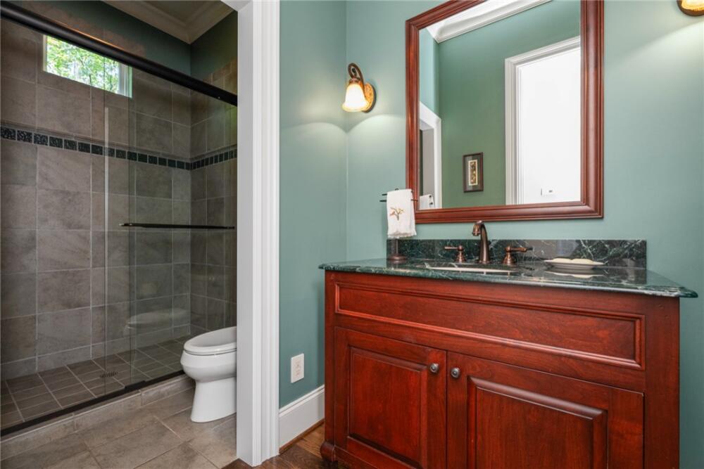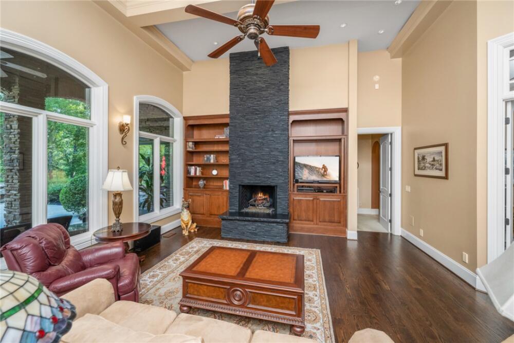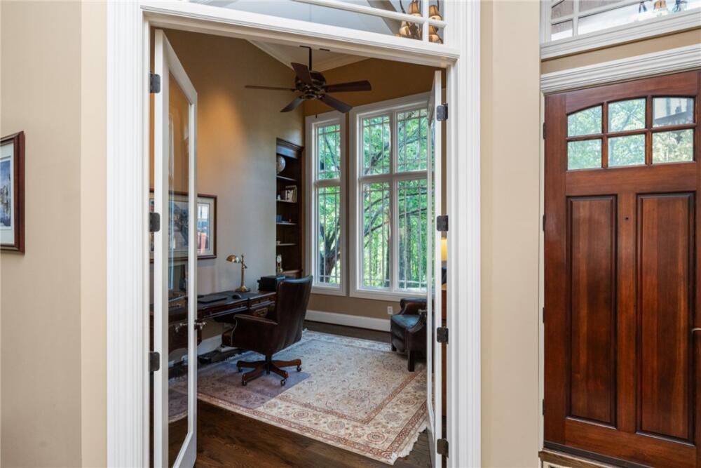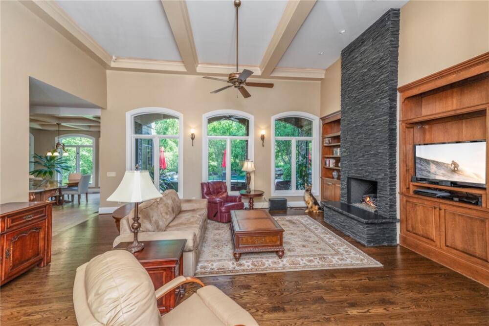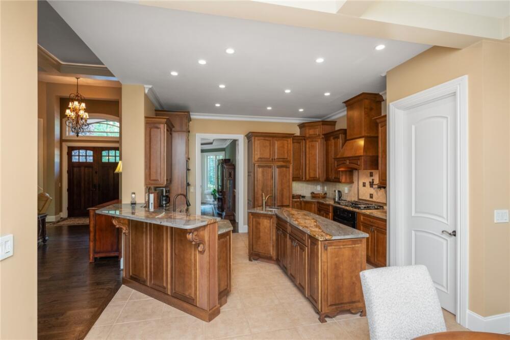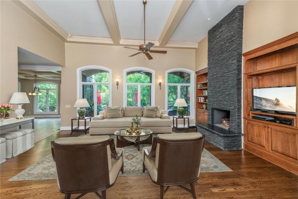 Welcome to 117 Summer Sweet Trail—a private four-acre retreat nestled within the prestigious Cliffs at Keowee Vineyards, where timeless elegance meets refined mountain living. Thoughtfully designed and meticulously maintained, this nearly 4,000-square-foot custom residence offers a seamless blend of luxury, comfort, and serenity in one of Lake Keowee’s most sought-after communities. A stately paver driveway and courtyard set the tone as you arrive to this very private location, leading into an inviting interior that exudes warmth and sophistication. The soaring great room, anchored by a striking two-story slate fireplace and framed with custom built-ins, is softened by ambient accent lighting—perfect for intimate evenings or lively entertaining. At the heart of the home lies a chef’s kitchen designed for both function and beauty. Granite countertops, a pot filler, dual ovens, two sinks, a gas cooktop, walk-in pantry, and a spacious prep island make this a dream for any culinary enthusiast. Adjacent, a casual dining space with coffered ceilings and French doors opens to your private outdoor sanctuary, while a formal dining room provides the perfect setting for more elegant occasions. The main-level primary suite is a peaceful haven featuring tray ceilings, a bay window, custom cabinets, private patio access, and a spa-like ensuite bath with a rainfall shower, dual handheld showerheads, a chroma-therapy jetted tub, and a generous walk-in closet. A dedicated office, complete with French doors, built-in shelving, and expansive windows, offers a quiet and inspiring space for work or reflection. Upstairs, three generously sized bedrooms provide ample accommodations for family and guests. One room is currently used as a fitness/bonus/media space, offering flexibility to suit your lifestyle. Two additional full baths ensure comfort and convenience. Step outside from the main floor level to your resort-style backyard, where an inground chlorine pool with vanishing edge appears to flow into the professionally landscaped setting. This is truly a hidden oasis only visible to the home owner and their guests; a luxurious spa-like experience with a covered veranda and built-in grilling station create the perfect setting for year-round outdoor living and entertaining. Additional highlights include a three-car garage, generator, three HVAC units, two tankless water heaters, a custom laundry room with built-in dog shower, central vacuum, landscape lighting and irrigation—every detail thoughtfully curated for effortless living. The location is also a benefit — with close access to 25 miles of trails, the equestrian center, easy access to the lake boat slips and the Lake House restaurant and out of the community via the gatehouse.