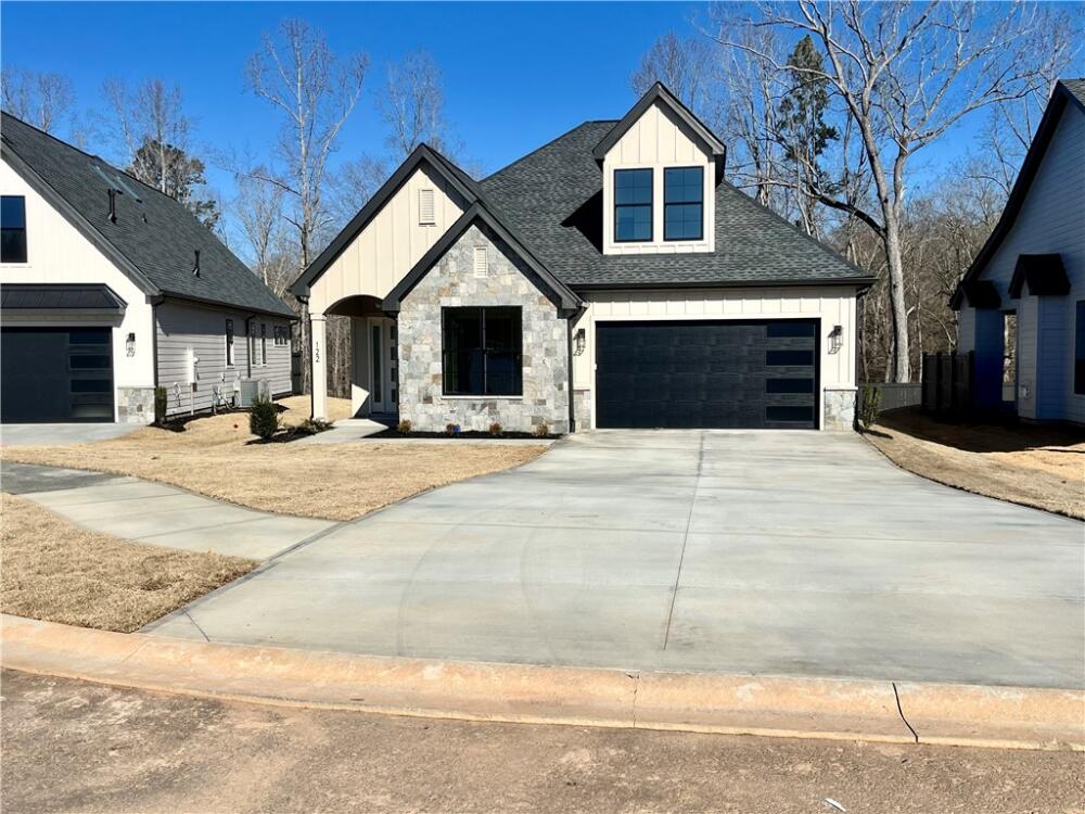 This spacious Baltic floorplan is currently under construction with an anticipated completion of Spring 2026. Offering 2,773 square feet, this home features 3 bedrooms, 2.5 bathrooms, and a beautiful study/office on the main level, ideal for working from home or creating a quiet flex space. The layout also includes a main-level primary suite with additional living space upstairs, providing both comfort and flexibility. Planned interior selections include Alabaster walls, 10-foot ceilings on the main level, hardwood stair treads, skylights at the loft, and black hardware throughout, giving the home a bright yet refined feel. The kitchen is designed to impress with 3cm Calacatta Gold quartz countertops, a white farmhouse sink, Sedona cabinetry, a designer wood hood, and a gas cooktop with hood, blending function and style seamlessly. The primary bath will include a frameless shower door, Morning Frost countertop, and designer tile selections, continuing Rosewood Communities’ attention to quality craftsmanship throughout the home. Located in Kingswood Cottages, this upcoming home offers low-maintenance living in a convenient Clemson location.