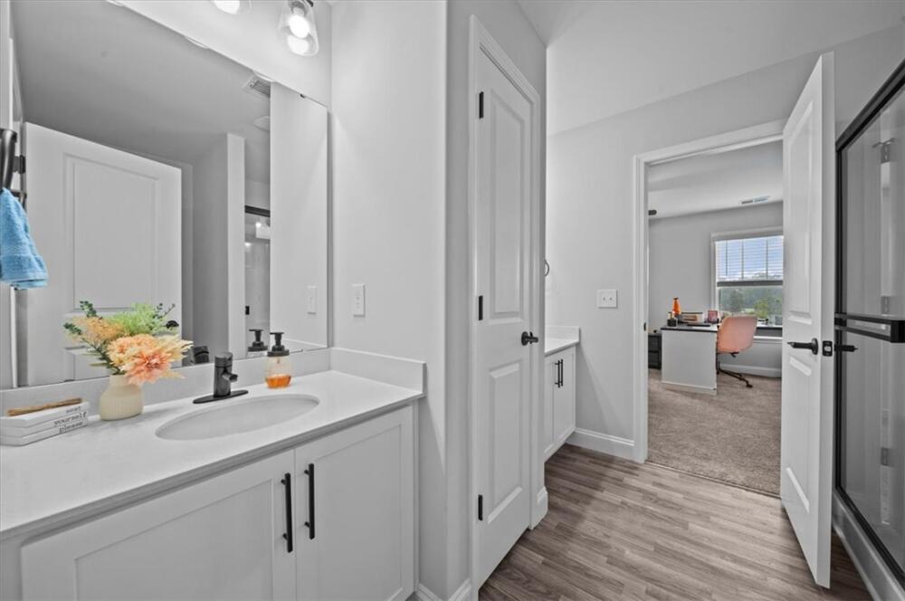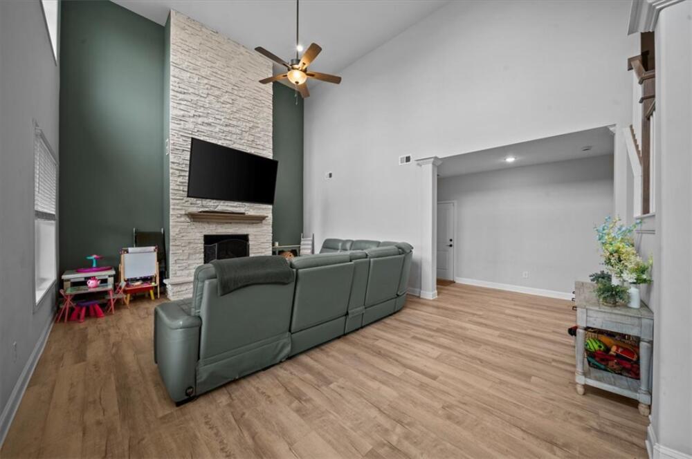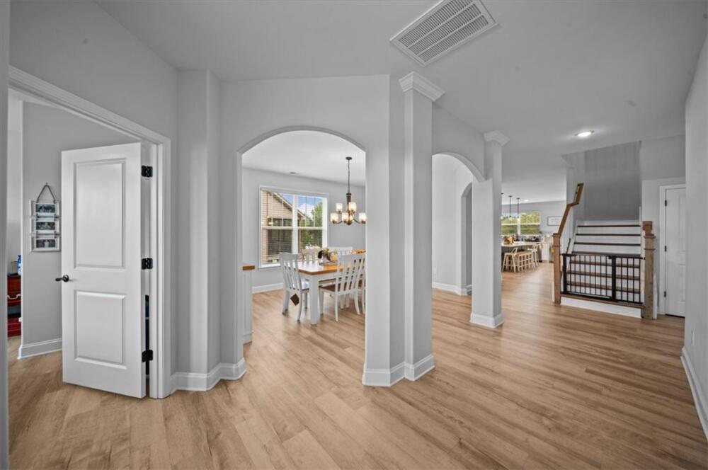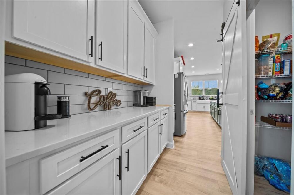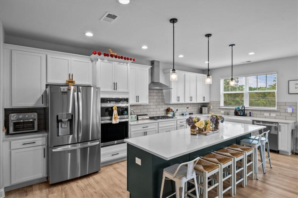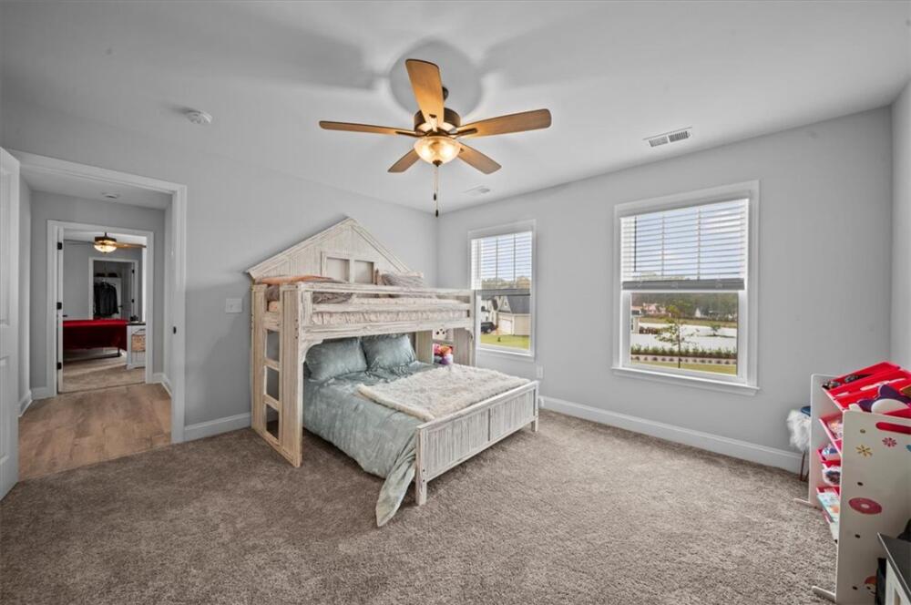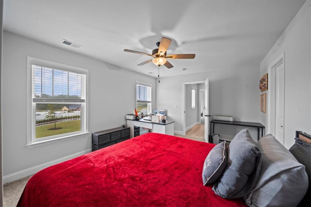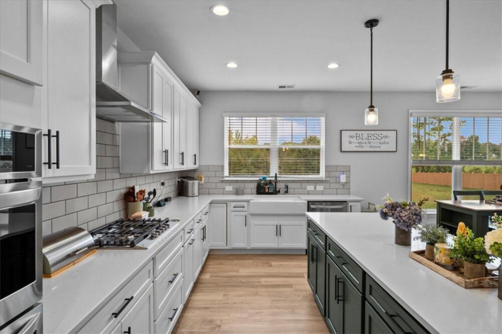 Nestled in the tranquil Alder Pond community of Campobello, South Carolina, this stunning 2024-built Craftsman-style residence spans approximately 3,800 square feet on a 0.81-acre lot, perfectly positioned to capture serene views of the community pond and distant Blue Ridge Mountain vistas. The exterior welcomes you with a charming covered front porch, durable Hardie Plank siding, and low-maintenance landscaping that enhances the home’s curb appeal. Step inside to an open-concept main level bathed in natural light through oversized windows. The spacious great room, anchored by a cozy gas fireplace, flows seamlessly into a state-of-the-art kitchen featuring a farm sink, sleek quartz countertops, stainless steel appliances, a large island, and a butler’s pantry for added convenience. Soft-close drawers throughout the home add a touch of luxury, while the kitchen window frames picturesque pond views, making every meal a scenic experience. The adjacent dining area is perfect for gatherings, large or small. The second-level primary suite is a private sanctuary, boasting multiple walk-in closets and a spa-like en-suite bathroom with dual vanities, a tiled walk-in shower, and elegant finishes. Four additional bedrooms, one on the main level and three upstairs, with access to well-appointed full baths, provide ample space for family, guests, or a home office. A versatile loft area upstairs serves as a flexible space for relaxation, play, or hobbies. Luxury vinyl plank flooring, ceramic tile, crown molding, and recessed lighting throughout reflect the home’s many upgrades, blending style with durability. Outside, the expansive backyard overlooks the serene Alder Pond, ideal for gardening, relaxation, or future additions like a play set. The attached three-car garage with epoxy floors includes a dedicated section perfect for a man cave, workshop, or extra storage, catering to hobbies and convenience alike. The Alder Pond community enhances daily life with its scenic pond for quiet strolls, a picnic shelter for neighborhood gatherings, and proximity to miles of trails near the Tryon International Equestrian Center. Minutes from Interstate 26, this home balances rural charm with easy access to Greenville’s vibrant dining and shopping or Asheville’s cultural attractions.