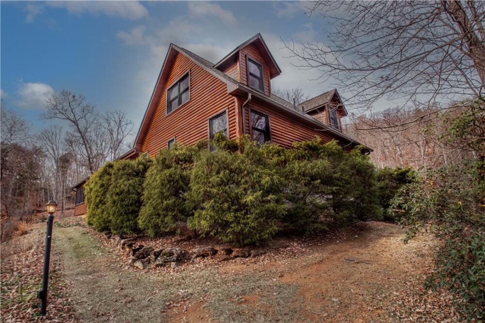 Priced Below Appraisal!! Imagine your own private mountaintop retreat on 8.5 acres in the midst of all SC’s gorgeous hiking and waterfalls!! This pristine log cabin set in the woods overlooking a valley feels like you don’t even have neighbors. But in reality, you’re just 20 min from downtown Travelers Rest and all it has to offer! You drive up the mountain on private neighborhood roads past ponds, undisturbed natural beauty, and a few hidden homes to your covered rocking chair front porch, facing Glassy Mountain. Your front door opens to a two story living area with a soaring rock chimney and hearth with a wood stove. The upstairs windows bring natural light into the space all day long, and the loft area provides extra living space in the same area. Behind the living room, a kitchen with beautiful custom wood cabinetry shows off new granite countertops. A half bath nearby adds convenience for your guests. The breakfast area opens into a large sunroom with breathtaking winter views of the valley nearby and Paris Mountain in the distance, that brings nature inside all summer long. A screened porch off the sunroom is perfect to enjoy our temperate SC springs and falls. Back inside, the main level also features a large den, two bedrooms, and two full baths. Every room has a perfect view of the surrounding land through high quality Andersen windows. The primary suite on the main level has a jetted tub, separate shower, double vanity with new granite, and a walk in closet. Upstairs off the loft is a third bedroom, third bath, and an additional spacious office/bonus room. Outside, there is a two car attached garage for storage, a detached shed for projects and wood storage, and a beautiful fire pit just up the granite outcropping. And if storage catches your attention, don't forget the huge walk-in attic at the top of the stairs! Surrounding lands are other large neighborhood lots and Camp Old Indian. Your home should be protected from nearby development for many years. Come sit a spell and picture your life here! Your stress will lower every time you look out the window or breathe deeply of the fresh mountain air. With a well and septic already in place, all you’d need to add to be completely off the grid is solar. Recent updates include roof (2022), HVAC (2021), new well pump and tanks (2022), paved drive (2022), and fresh new paint throughout! Located just 8 min to North Greenville University, 30 min to Greer or Hendersonville, and 45 min to downtown Greenville. Let's take a look!
