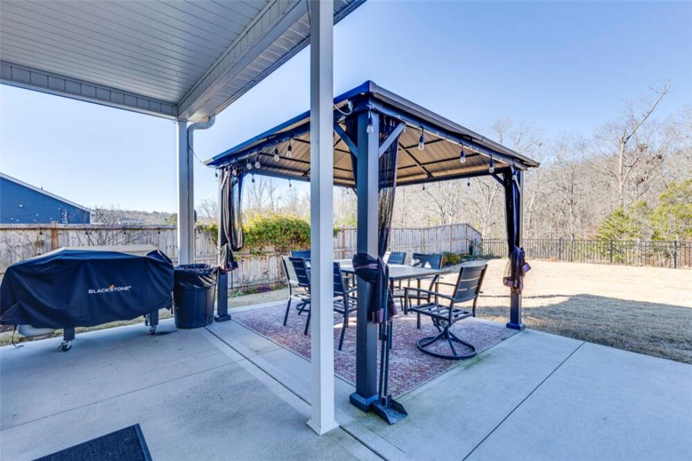 Stunning, like-new home—without the construction mess—featuring mature landscaping and an open, spacious layout. Neutral colors, large rooms, and soaring ceilings make this home feel even larger than it is. The floor plan offers three bedrooms plus a generous bonus room. The luxury kitchen blends beauty and function with granite countertops, abundant cabinetry, a gas range, walk-in pantry, and a large island with bar seating—perfect for everyday living and entertaining. The great room welcomes you with a fireplace, vaulted ceiling, and expansive backyard views. All windows are fitted with blinds that convey with the home. Outside, enjoy one of the largest lots in the community, backing to a lush forest for privacy. The fenced backyard features a gazebo with a ceiling fan, ideal for year-round enjoyment. A spacious two-car garage includes extra outlets for projects and hobbies. Located in a well-maintained community with low HOA fees and a fenced playground, this home is conveniently situated off Hwy 76, near the charming town of Pendleton and just minutes from Clemson. If you want the feel of a new home—without the dirt and hassle—this is the one.