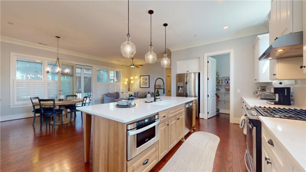 Welcome home to Patrick Square! With over 2,700 sf of usable space (1955sf finished plus 773sf unfinished), this exceptionally remodeled home in one of Clemson’s most coveted communities is the perfect nexus of style and convenience. Recent luxury upgrades make everyday moments feel special, and help ensure years of worry-free living: upgraded master shower, new bathroom flooring, freshly painted walls and trim, quartz countertops throughout, designer lighting and plumbing fixtures, fully fenced yard, custom landscaping, custom laundry and garage cabinetry, plantation shutters, freshly sealed deck, and more! The gourmet kitchen opening to one of two living rooms is a chef’s dream, and makes entertaining a joy. High-end appliances, quartz countertops, luxury fixtures, upgraded cabinetry, oversized pantry, nearby wine/coffee bar, and eat-in bar inspire meals and conversations alike. Enjoy a morning coffee on the back patio and watch the hummingbirds feed. Retreat from a busy day in the sprawling primary suite. This sanctuary includes a separate tub, tiled shower, dual sinks, and oversized walk-in closet. Two additional bedrooms each feature an attached bath ensuring loved ones and guests alike feel welcome. Cozy up by the fireplace or watch the game from the sunporch. Tinker in the finished garage, or pen your next great work in the front study. Indeed, this thoughtfully designed floorplan has all the hallmarks of JMC’s quality construction, and provides space for everyone and everything. With HOA dues ($222/mo) covering all amenities, upcountry fiber, grass cutting, weed whacking, blowing, and street lighting you can spend more time doing the things you love and less time on maintenance. Patrick Square Town Center is just steps away featuring award-winning restaurants, shops, and fitness. Experience the epitome of southern living and enjoy all this premier community has to offer – weekly farmer’s market, two pools, two clubhouses, walking trail, playgrounds, shops, restaurants, fitness centers, medical providers, and more. Learn more at patricksquare.com AND patricksquaretowncenter.com. Just off the Issaquena Trail exit on rt 123 with direct access to downtown Clemson, Greenville, and beyond. Schedule your personalized showing today. Select furnishings available.