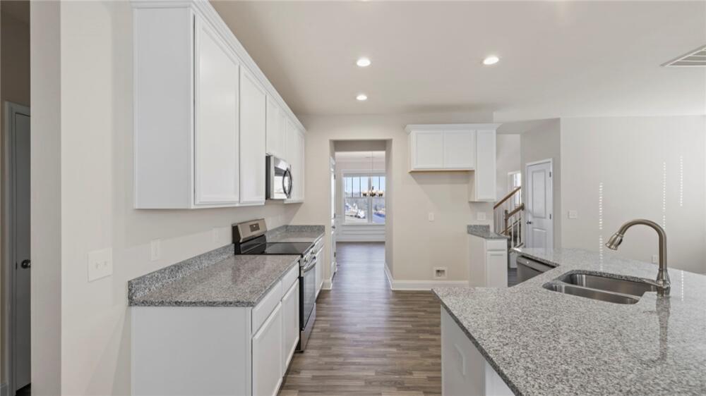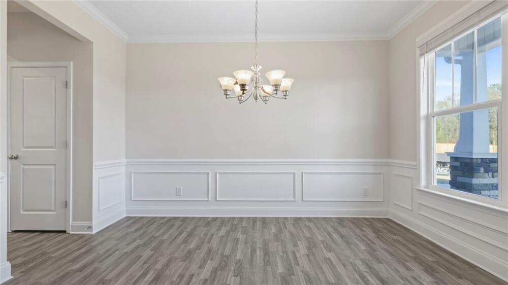 Check out 207 Durness Court, a beautiful new home in our Palmetto Valley community! This thoughtfully designed two-story home features four bedrooms, two and a half bathrooms, and a two-car garage across 2,550 square feet of living space. Designed with elegance and comfort in mind, this home blends open living areas with timeless details throughout. As you enter through the front door, a welcoming foyer leads to the formal dining room featuring hardwood floors, crown molding, and decorative trim. The open-concept kitchen flows seamlessly into the living room and casual dining area, creating an inviting space for both everyday living and entertaining. The kitchen includes 42-inch showcase cabinets, stainless steel appliances, granite countertops, and a center island that adds both style and functionality. The primary suite is conveniently located on the main level and features a tray ceiling with a ceiling fan, a spacious walk-in closet, and a luxurious bathroom with double sinks, a separate tub and shower, and cultured marble countertops. Upstairs, three additional bedrooms, a full bathroom, and a versatile flex room provide plenty of space for work, relaxation, or play. With its thoughtful layout, upscale finishes, and inviting design, this home combines beauty and practicality, creating a space that feels both sophisticated and welcoming.