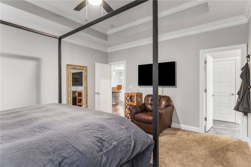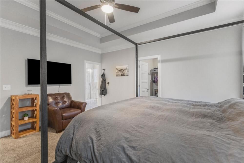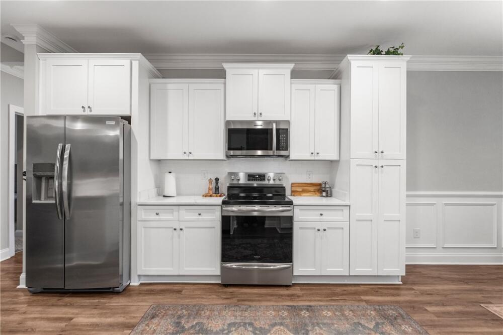 Tired of HOAs and lifestyle restrictions? Enjoy the freedom of relaxed living in this beautiful home on over an acre of land! Just over a year old and in excellent condition, this property offers an open floor plan with luxury vinyl plank flooring throughout the main living areas. The split-bedroom layout provides privacy, while the oversized bonus room offers endless possibilities—home office, gym, playroom, or media space. The spacious primary suite features a large walk-in closet and a private bath with double vanities. Enjoy peaceful mornings and evenings on the covered back porch overlooking your private backyard. The kitchen boasts solid surface counters, modern appliances (all of which convey), and plenty of storage. A walk-in laundry room and a roomy two-car garage add even more convenience. And the showstopper? A 40x30 detached garage with an attached 20x18 extra room—perfect for RV or boat storage, a workshop, or even a small business! All this in a prime location—very convenient to shopping and medical facilities, with easy access to I-85. So many options with this rare find—schedule your showing today!