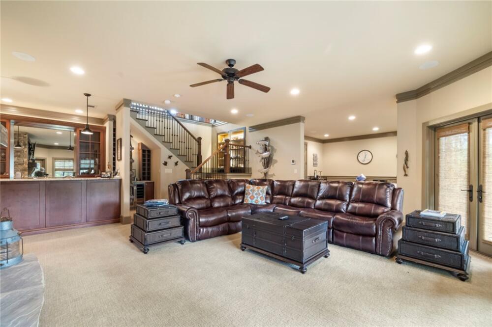 Experience the perfect blend of casual elegance and lakefront luxury at 224 Palmer Way, located in the highly sought-after Old Edwards Reserve at Lake Keowee. Nestled on a quiet cove, this custom-built 5-bedroom home offers peaceful natural surroundings, high-end finishes, and a double-slip dock—a feature that makes this property truly exceptional. The open-concept floor plan is designed for both comfortable everyday living and effortless entertainment. The main level features vaulted ceilings, wide-plank hardwood floors, and expansive windows that bring the outdoors in. The great room centers around a floor-to-ceiling stone fireplace that flows seamlessly into a spacious dining area and kitchen with granite countertops, and Jenn-Air appliances. The main-level primary suite is a peaceful retreat with double-trey ceilings, a spa-inspired ensuite bath, and his and her walk-in closets. Downstairs, you'll find two additional guest bedrooms, game room, a wet bar, and an extra garage for all your lake gear or golfcarts. Above the garage is a bonus space perfect for a home office, media room, bunk room, or a private fifth bedroom. Outdoor living is equally impressive. Enjoy morning coffee or evening sunsets from the screened porch, host gatherings on the open deck, or head down to your boat for a day on the water. Whether you're cruising Lake Keowee or simply soaking in the scenery, this home invites you to embrace the best of lake life. Located just minutes from the Reserve’s premier amenities—including the Jack Nicklaus Signature Golf Course, clubhouse, marina, fitness center, tennis courts, hiking trails, and dining—this home offers a rare opportunity to enjoy privacy and convenience in one of South Carolina’s premier lakefront communities. This is more than a home, it’s a lifestyle. Do not miss the opportunity to make 224 Palmer Way your new home — where quality, style, and location come together effortlessly. Buyer must purchase $85k (goes up to $100K August 15th) Premier Membership at closing