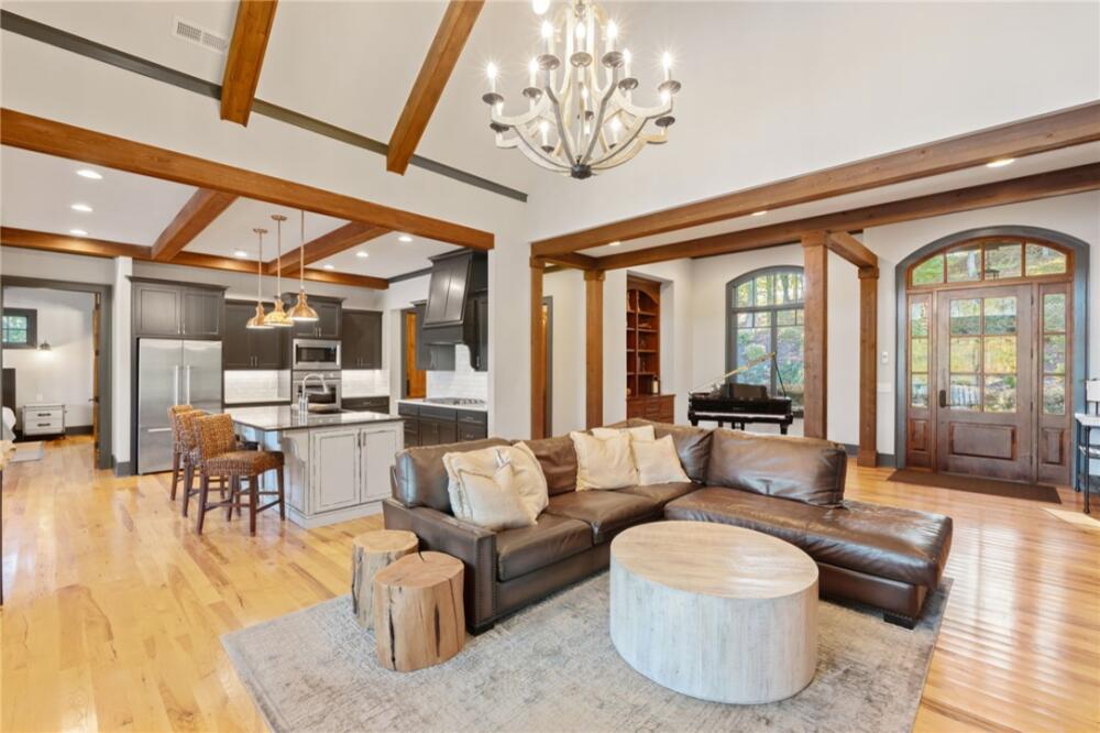 Price improvement! Now positioned below October 2025 appraisal! Situated on a flat waterfront lot framed by mature trees and sandy beach shoreline, this property showcases a serene natural setting with effortless access to the covered dock. With 265' of lake frontage, this setting is truly spectacular. From the moment you arrive, the arched glass entry framed in rich wood makes a strong first impression and sets the tone for the style and craftsmanship inside. The great room features vaulted beamed ceilings, a stone fireplace, and a wall of glass with sliding doors that open to the covered porch, showcasing lake views and seamless indoor-outdoor living and creating a remarkable gathering space. The arched transom windows mirror the timbered architecture beyond. Every element of this home speaks to refined mountain lake luxury. The gourmet kitchen combines elegance with function. A striking stone farmhouse sink, custom cabinetry, and premium appliances—including a gas cooktop with designer hood, make this space both beautiful and practical. A generous island with seating anchors the room, while contrasting finishes of dark cabinetry, light counters, and a timeless backsplash lend sophisticated appeal. Designed for both everyday living and entertaining, the kitchen flows seamlessly into the adjacent dining and living areas. Just off the kitchen, a window-wrapped dining area with built in cabinets, exposed beams and warm wood accents offer panoramic views of the lake, while the open layout invites both intimate meals and larger gatherings. With its effortless connection to the kitchen and great room, this space captures the essence of refined lakefront living. Outdoor living is seamlessly integrated into the design, with a covered porch that extends the living space and provides the perfect backdrop for entertaining or unwinding while taking in the beauty of the lake. The surrounding landscape offers privacy while still allowing for open vistas of the water. The main-level primary suite is privately positioned to one side of the home and features a spa-style bath with dual vanities, a soaking tub, and a walk-in shower. Enjoy your morning coffee on the private screened porch connected to the suite. Two additional bedrooms with a shared bath are located on the opposite side of the home, offering an ideal layout for privacy and convenience for guests and family. Above the garage, you'll find a fully finished bedroom suite with full bath which offers flexible functionality - well suited as an additional bedroom, bonus room, secondary rec space or private guest retreat. 20 minutes to Clemson! The Reserve at Lake Keowee offers a Jack Nicklaus Signature Golf Course, a par 3 practice facility with driving range and open-air range bar, Clubhouse with fine dining, pub area and wine bar, Fitness Center, Hiking Trails, 4 Har-Tru Clay Tennis Courts, Lakeside Resort-Style Pool and Cabana, Settlement Pool, 8 Pickleball Courts, Marina offering both slips and boat rentals, and Market great for lunch and select provisions. This gated community offers many activities including fitness classes, various social clubs, and a high-speed fiber-optic internet system in place. The Reserve at Lake Keowee is a full amenity lakefront golf community. The Settlement section has its very own Pool Pavilion/fitness. Premier membership initiation deposit required at closing. Appointment required - agent to attend showings.