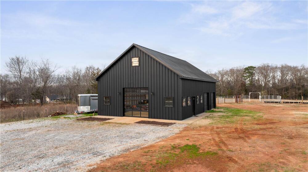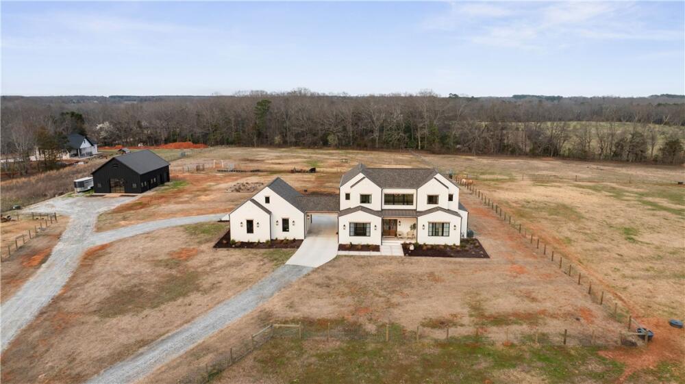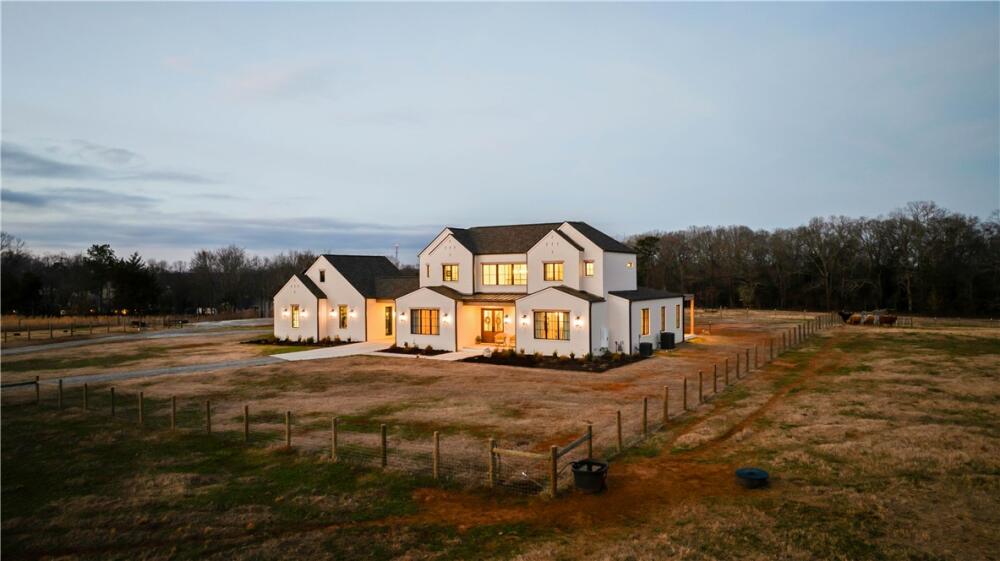Feels like a heartfelt embrace from the moment you arrive at the gates, where the pastures of serenity and chapters of love are waiting to be written. This white farmhouse residence expands over 16 acres, where every brick and beam tells a story, every detail chosen with intention. A place that is as warm as it is timeless. Multiple pastures greet you as you pull into the Porte Cochere. The front porch is decorated with a solid oak double door entry, where many sunsets will one day be enjoyed. Upon entering, the wood floors flow gracefully throughout, leading you into a two-story foyer that opens to an Iron+ Oak stair case. The scenic floor plan is a true gift, framing breathtaking farm views from every window—like living in a painting where the countryside unfolds just for you. High-end finishes whisper quality without shouting, from the Thermador professional-grade appliances in the kitchen to the custom 11-foot Marble + Oak island that invites gatherings and quiet mornings alike. A farm sink, marble backsplash, tower cabinets, sconce lighting, and a beautifully crafted hood with a pot filler make this kitchen feel poetic, yet practical. While the stone fireplace pulls the earthy out door tones into your great room, the built-in arched libraries beg for cherished books and stories shared around the firelight. A Mudroom Pantry creates a necessary space for everyday living, with direct access from the Porte Cochere functioning as an easy loading zone. This residence adapts to life’s rhythms with three bedrooms and four full baths, plus two flexible rooms that could easily become additional bedrooms, growing with your family. The main level owners suite leads outdoor onto the patio for a breath of fresh air. This suite was thoughfully curated with oak cabinetry featuring a personal styling zone for the Lady of the House. Soak the day away in the freestanding tub, or jump into a mosaic marble XL shower featuring his-and-her showerheads to unwind. An adjoining walk-in closet thoughtfully connects from the primary bath into the laundry, making everyday moments a little easier and more intentional. But oh, the sunsets here—they’re the kind that stop you in your tracks, painting the sky in hues of gold and crimson as they dip behind the horizon. The pastures are alive with possibilities, where Highland cattle graze unbothered in the fields, enclosed by 4,500 feet of newly installed farm fencing. At the heart of it all stands the beautiful Black Barn, a striking highlight that feels like the soul of this property—ready for dreams of ranch life providing ample storage for equpiment and supplies, but beautiful enough to be utilized as your very own event space! This aesthetic Black Barn has future Barndominium potential with a seperate septic already in place, and its very own electrical panel. This isn’t just a house; it’s a Dream Ranch woven with care. Where every view, every corner, invites you to slow down and savor the beauty around you. This property has potential for many uses, as the road frontage allows to be subdivided up to 5 more lots to allow for family compound living. Located between Anderson and Clemson, grab the boat and enjoy Lake Hartwell or Keowee. Escape to Clemson University, just 15 minutes away, for a weekend football game, the farmers' markets, or shopping and dining nearby. At 2811 Lebanon, the value is in the quiet undistracted evening with your loved ones, the memories made in a sanctuary of your very own, without the noise of the outside world. This 16+ acre property is a great example of that lifestyle - for those looking to settle down, grab a cup of tea in the evening and quietly enjoy the stillness of the outdoors. There are many properties out there, but how many can bring you peace and security?