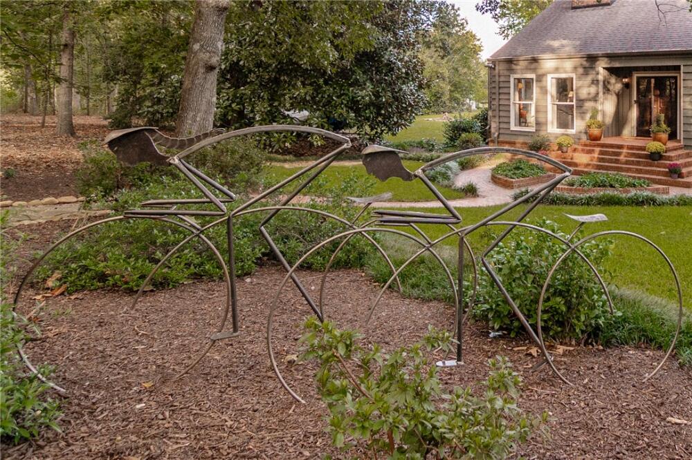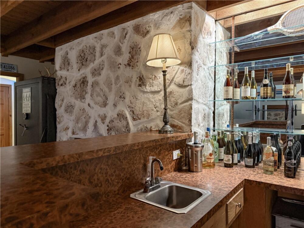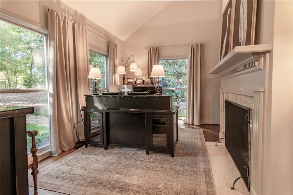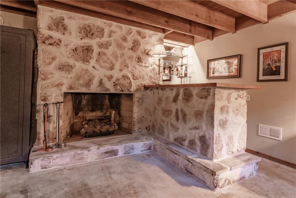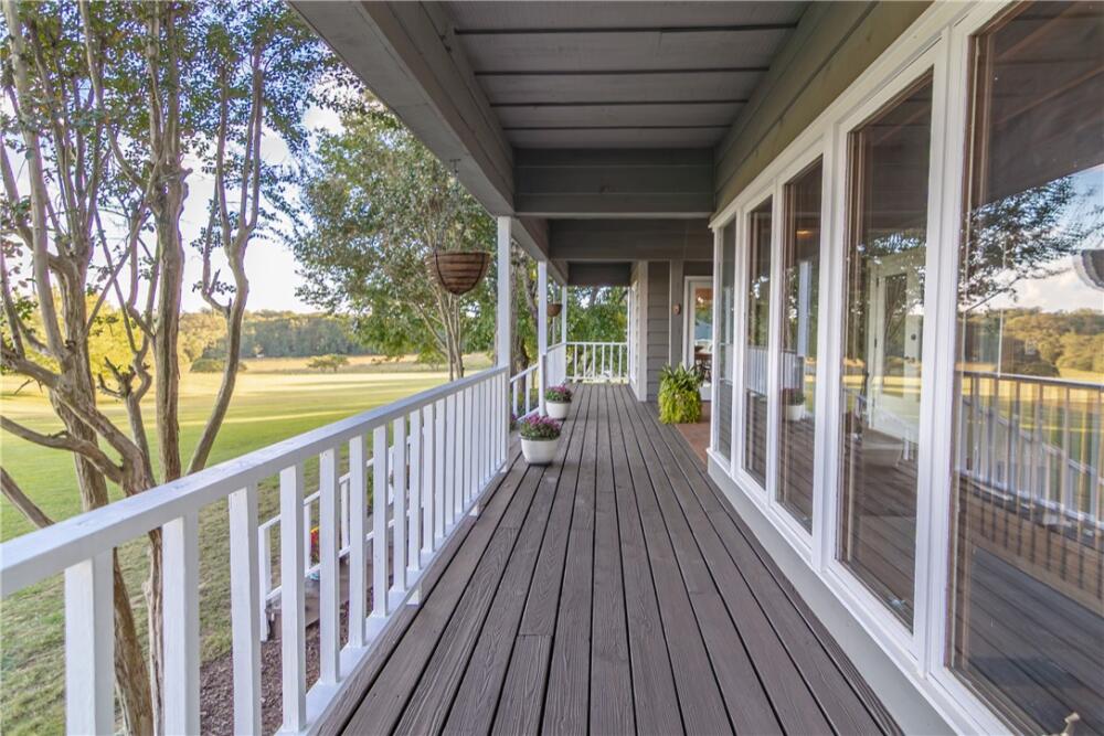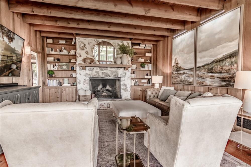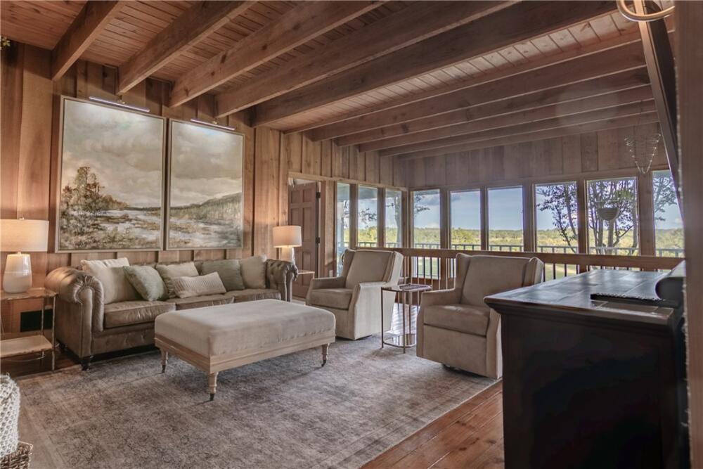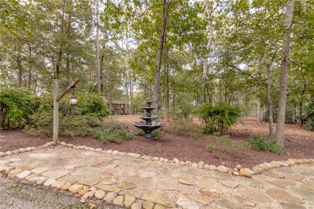 Wake up to inspiring views every day in this luxurious yet welcoming home, purposefully designed to maximize your ability to enjoy the beauty of its 5.4-acre setting in the sought-after Country Place subdivision--so close to everything yet feels like your own world. This 4 bedroom, 3.5 bath unique custom home offers timeless charm, modern updates, and spaces designed for gathering. The main floor showcases a stunning living room with rough-hewn cedar paneling, a floor-to-ceiling stone fireplace with gas logs, built-in bookcases, and an entire wall of windows overlooking the lush acreage. The beautifully remodeled kitchen (2022) is an entertainer’s dream, featuring walls of windows, a massive island with a second sink, dual dishwashers, a built-in full-size refrigerator and freezer, a walk-in pantry with granite countertop, and an abundance of cabinet storage. The formal dining room is ideal for hosting large gatherings, while the flex room with fireplace can serve as an office or a formal living room. Also on the main floor is a half bath, as well as a bedroom with an en suite bathroom and access to the back porch. The expansive covered back porch is perfect for watching sunrises and moonrises that will absolutely take your breath away. Upstairs, the primary suite includes balcony access, a completely renovated spa-like bath (2019) with dual vanities, quartzite countertops, a large walk-in shower, and dual walk-in closets. Two additional bedrooms feature built-in desks, shelving, and private sink/cabinet areas with a shared tub and toilet, plus access to a bonus room that could serve as a 5th bedroom. From the hallway, there is also access to the balcony for everyone to enjoy the view. Continue up to the top level, where a skylit landing creates a cozy reading nook or hobby space, flanked by two walk-in attic rooms that provide abundant storage. On the basement level, a finished recreation room with wet bar and a floor-to-ceiling stone fireplace with gas logs—another perfect spot for entertaining. You’ll also find an oversized 2-car garage and an additional storage room. This special home was thoughtfully designed to take in its beautiful natural surroundings—from the wooded front to the expansive back acreage. Here, every sunrise feels like a gift, and every gathering is made more special by the storybook setting. ***Seller is a licensed Realtor***