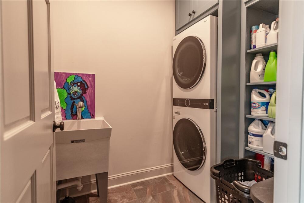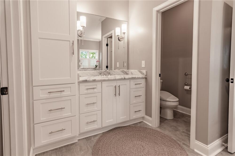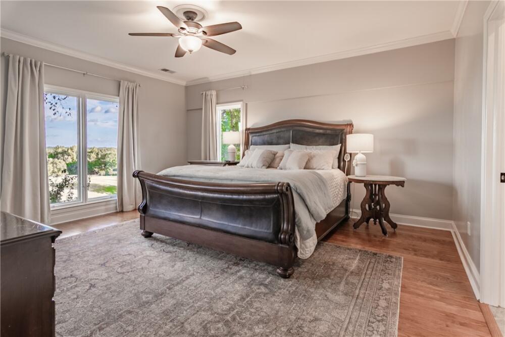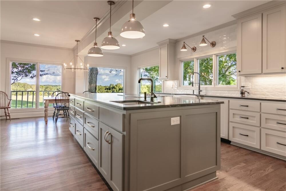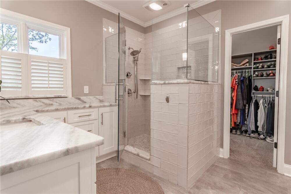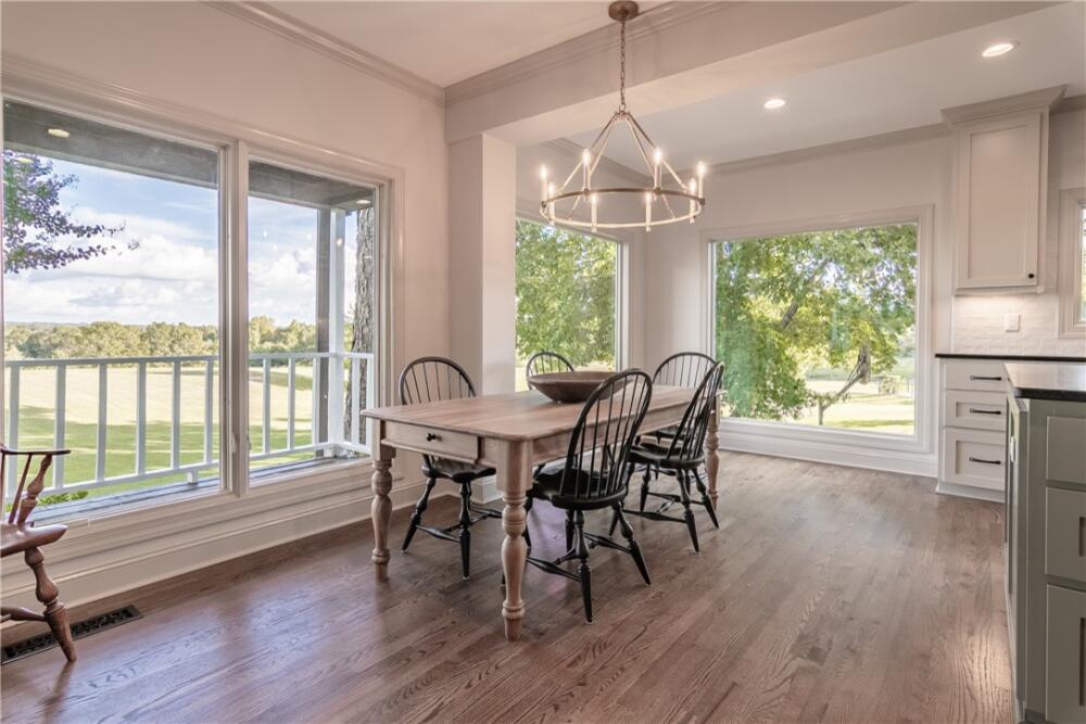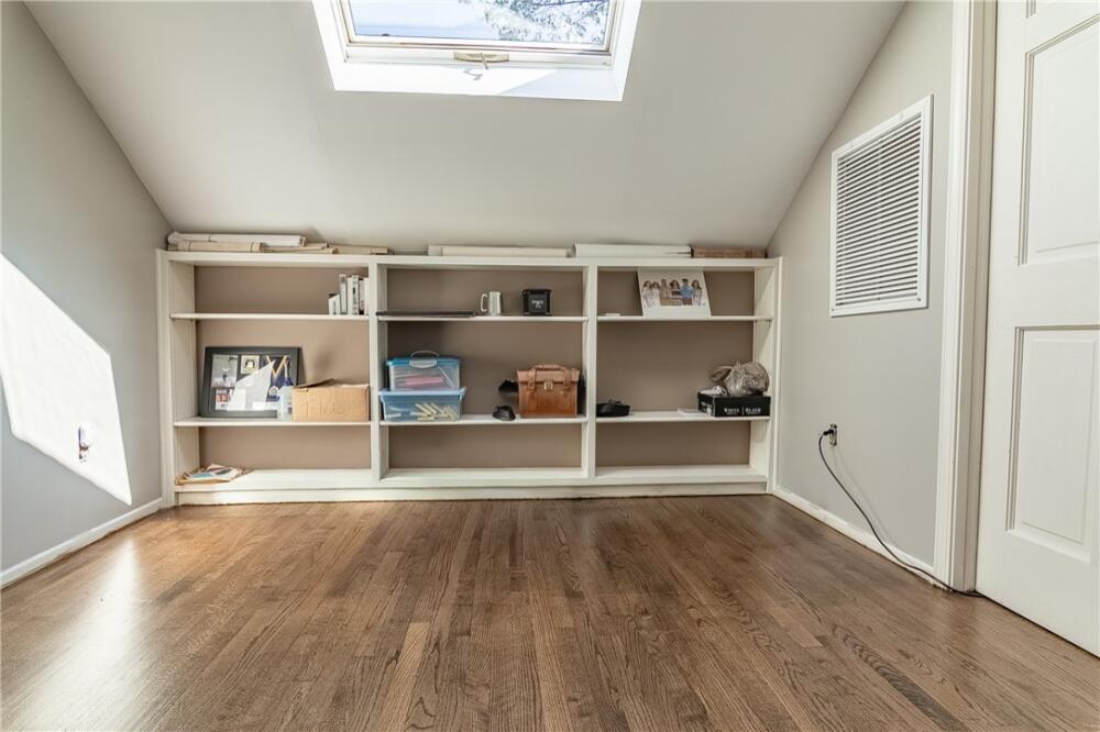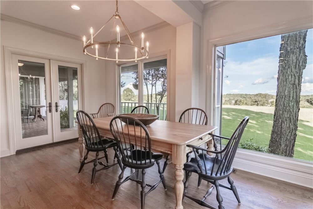 Wake up to inspiring views every day in this luxurious yet welcoming home, purposefully designed to maximize your ability to enjoy the beauty of its 5.4-acre setting in the sought-after Country Place subdivision--so close to everything yet feels like your own world. This 4 bedroom, 3.5 bath unique custom home offers timeless charm, modern updates, and spaces designed for gathering. The main floor showcases a stunning living room with rough-hewn cedar paneling, a floor-to-ceiling stone fireplace with gas logs, built-in bookcases, and an entire wall of windows overlooking the lush acreage. The beautifully remodeled kitchen (2022) is an entertainer’s dream, featuring walls of windows, a massive island with a second sink, dual dishwashers, a built-in full-size refrigerator and freezer, a walk-in pantry with granite countertop, and an abundance of cabinet storage. The formal dining room is ideal for hosting large gatherings, while the flex room with fireplace can serve as an office or a formal living room. Also on the main floor is a half bath, as well as a bedroom with an en suite bathroom and access to the back porch. The expansive covered back porch is perfect for watching sunrises and moonrises that will absolutely take your breath away. Upstairs, the primary suite includes balcony access, a completely renovated spa-like bath (2019) with dual vanities, quartzite countertops, a large walk-in shower, and dual walk-in closets. Two additional bedrooms feature built-in desks, shelving, and private sink/cabinet areas with a shared tub and toilet, plus access to a bonus room that could serve as a 5th bedroom. From the hallway, there is also access to the balcony for everyone to enjoy the view. Continue up to the top level, where a skylit landing creates a cozy reading nook or hobby space, flanked by two walk-in attic rooms that provide abundant storage. On the basement level, a finished recreation room with wet bar and a floor-to-ceiling stone fireplace with gas logs—another perfect spot for entertaining. You’ll also find an oversized 2-car garage and an additional storage room. This special home was thoughtfully designed to take in its beautiful natural surroundings—from the wooded front to the expansive back acreage. Here, every sunrise feels like a gift, and every gathering is made more special by the storybook setting. ***Seller is a licensed Realtor***