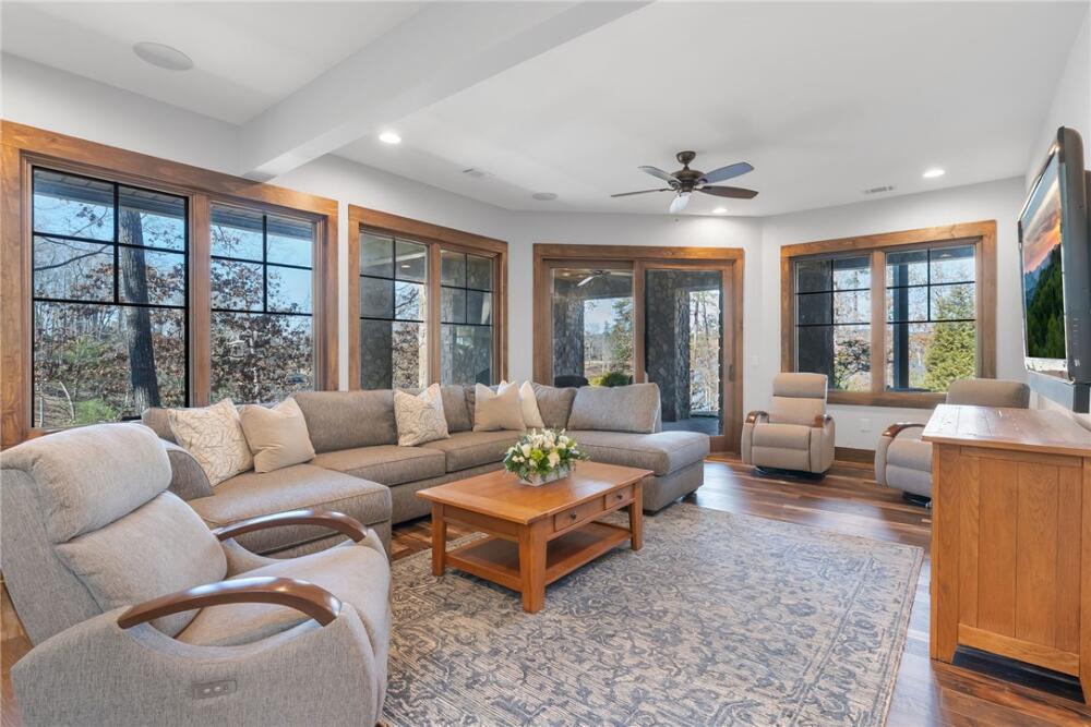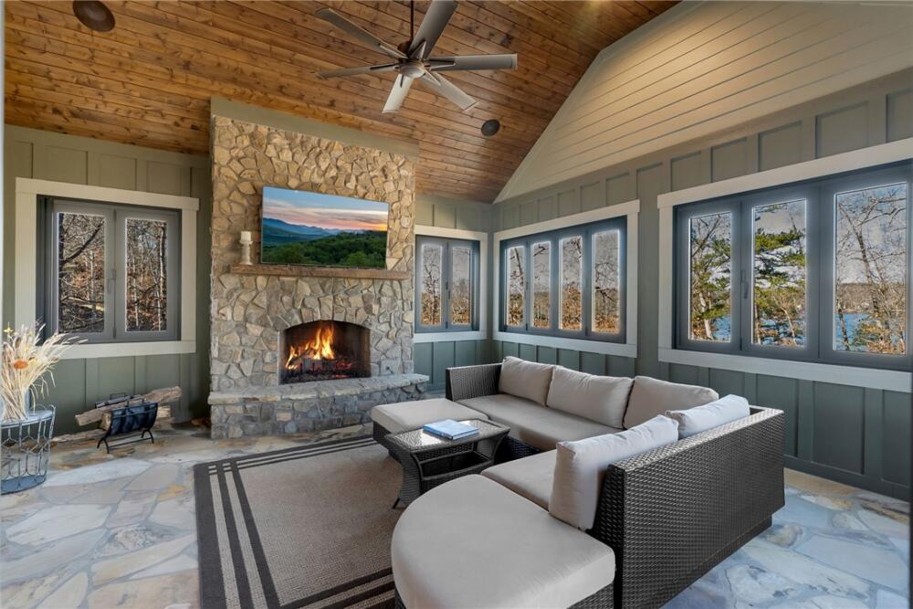 Located in the heart of The Cliffs at Keowee Springs, this exceptional custom-built waterfront home offers timeless design, generous living spaces, and an unbeatable location close to all community amenities. Built in 2016 and spanning over 5,000 square feet, the residence features 5 bedrooms, 4 full baths, and 1 half bath, thoughtfully arranged for comfort, privacy, and entertaining. Set on 1.37 gently sloping acres with over 184 feet of Lake Keowee frontage, the property provides easy access to the water and picturesque lake views throughout the home. The main level showcases a spacious primary suite complete with a large walk-in closet, garden tub, oversized walk-in shower, and direct exterior access. A thoughtfully placed secondary bedroom on the main level enhances the home’s ability to host guests with ease. A dedicated office provides a quiet and functional workspace, ideal for remote work or study. The open living areas flow seamlessly into a sun-filled sunroom with a fireplace, located just off the kitchen, and open onto a large deck overlooking the lake—perfect for relaxing or entertaining. The lower level offers a secondary living space, two additional bedrooms, and a second kitchen, ideal for extended family, guests, or multi-generational living. With exterior access, the lower level opens to a covered patio featuring a fireplace, extending the home’s outdoor living spaces year-round. Above the garage, you’ll find a private bedroom suite with a full bath, wet bar, and separate entrance, offering an ideal retreat for guests or additional living flexibility. Perfectly positioned near the clubhouse, wellness center, golf course, Beach Club, and other world-class amenities, this home combines luxury lakefront living with the convenience of being in the very center of The Cliffs at Keowee Springs. A club membership at The Cliffs is available for purchase with this property giving you access to all seven communities.