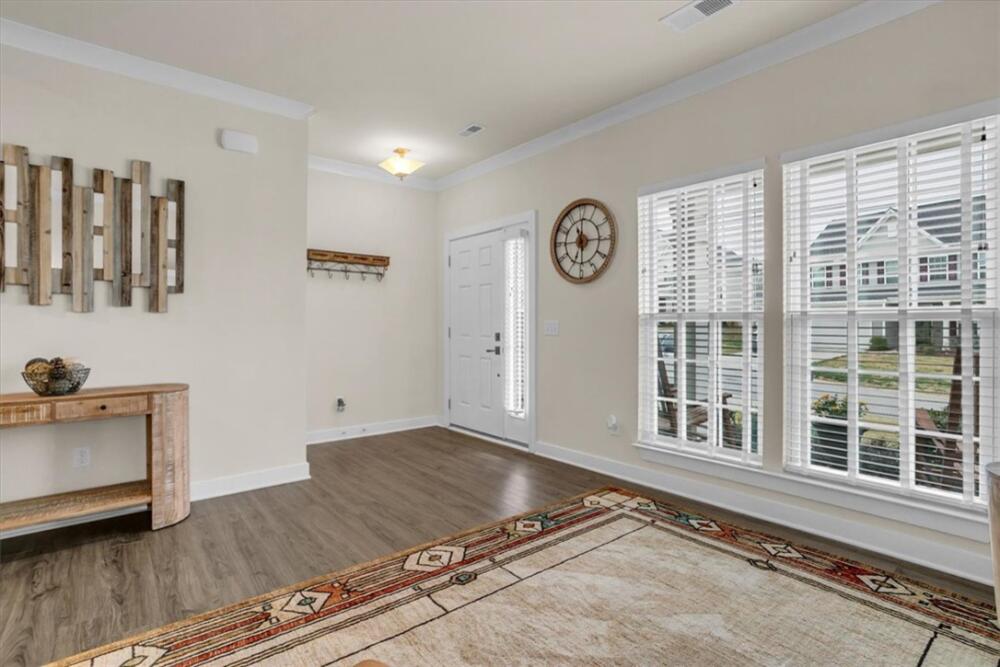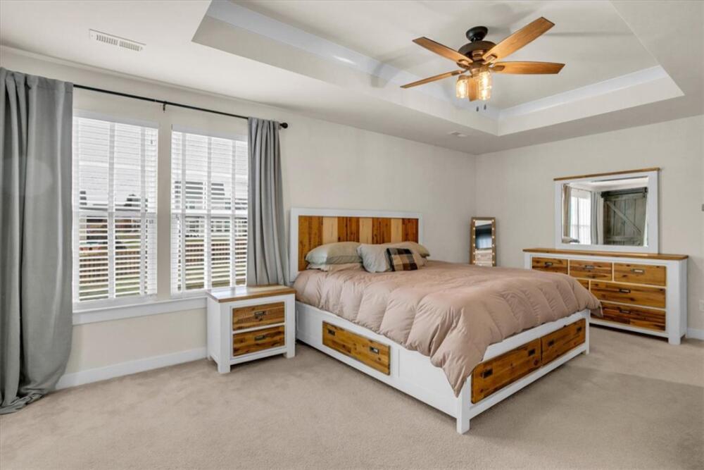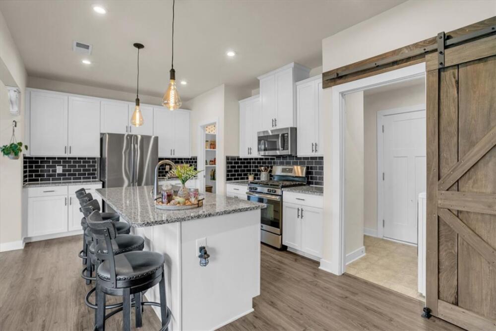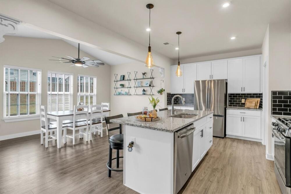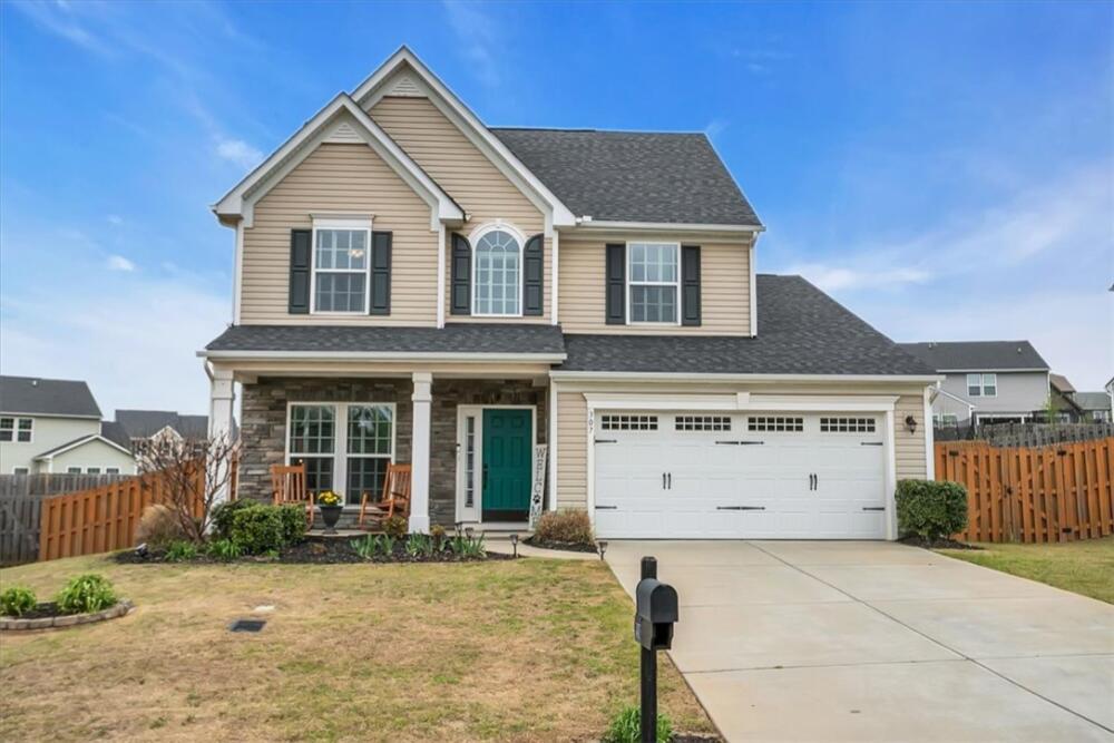 From the moment you step inside, you will notice how bright and pristine 307 Vicksburg Drive feels, with abundant natural light and a fresh, well-kept interior that creates an inviting first impression. Built in 2018 and beautifully maintained, this property offers comfortable, well-designed living spaces, quality finishes, and a location that makes daily life easy—just 15–20 minutes from downtown Greenville. Step inside to an open-concept layout designed for both everyday living and entertainment. The stunning white kitchen features granite countertops, a large island, stainless steel appliances with a gas cooktop, eye-catching backsplash, and an oversized pantry complete with a coffee bar. The kitchen flows seamlessly into the spacious living room, highlighted by a beautiful accent wall that adds warmth and character, along with a bright morning room/dining area. A versatile flex room on the main level provides the ideal space for a home office, playroom, or additional living area. Upstairs, you will find three additional bedrooms and a generous loft, offering plenty of room to spread out. The huge primary suite is a relaxing retreat with a trey ceiling, custom walk-in closet system, dual vanities, and a large walk-in shower. Outdoor living is just as inviting, with a covered back porch overlooking a fully fenced backyard featuring privacy fencing, a custom shed with built-in shelving, and solar lighting along the fence—creating a cozy ambiance for relaxing evenings or entertaining guests. This home has been meticulously cared for and includes custom blinds, designer ceiling fans in all bedrooms, pendant lighting in the kitchen, ceiling speakers in the living room, an epoxy-coated garage floor, smart garage door opener, in-ground sprinkler system, wired alarm system, and a French drain along the side of the home. The garage was extended an additional two feet during construction for added space and functionality. Located in the quiet, established community of The Oaks at Shiloh Creek, near shopping, dining, and schools, this move-in ready home stands out for its easy access to I-85—making commuting and travel a breeze.