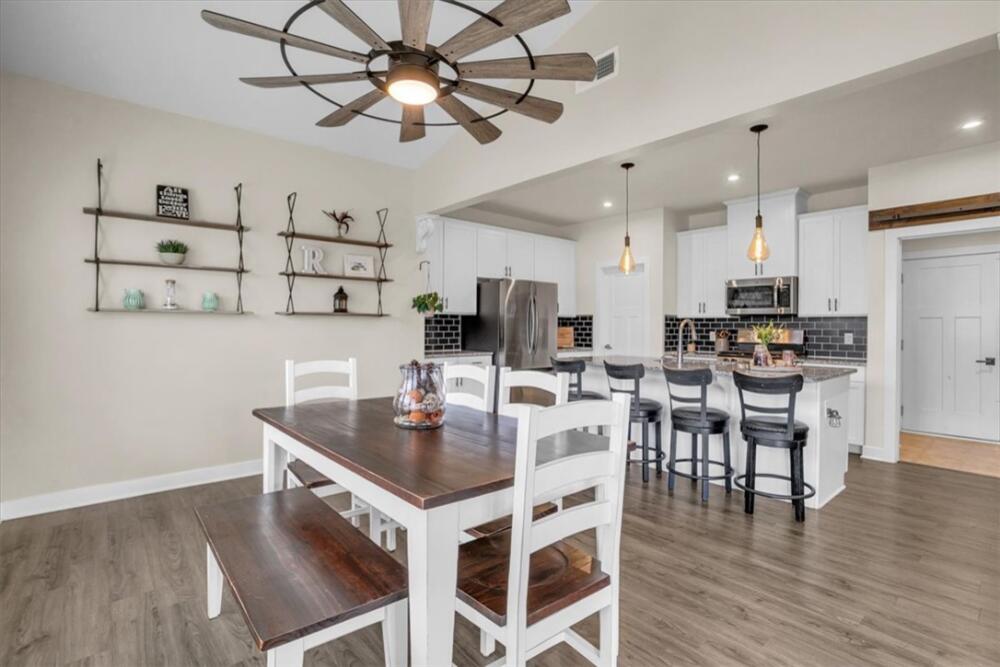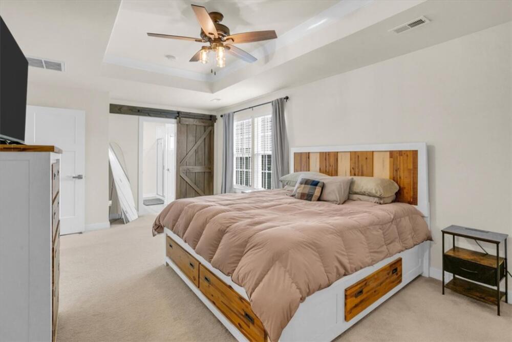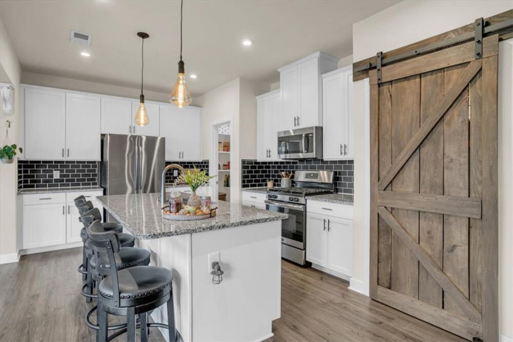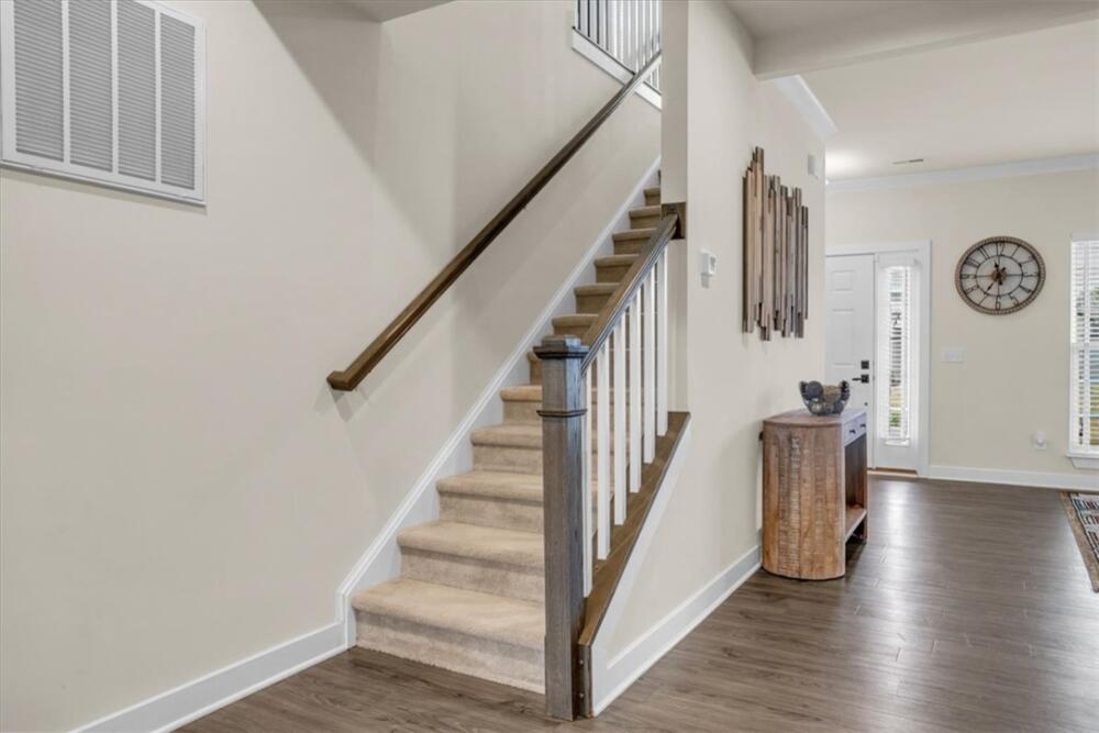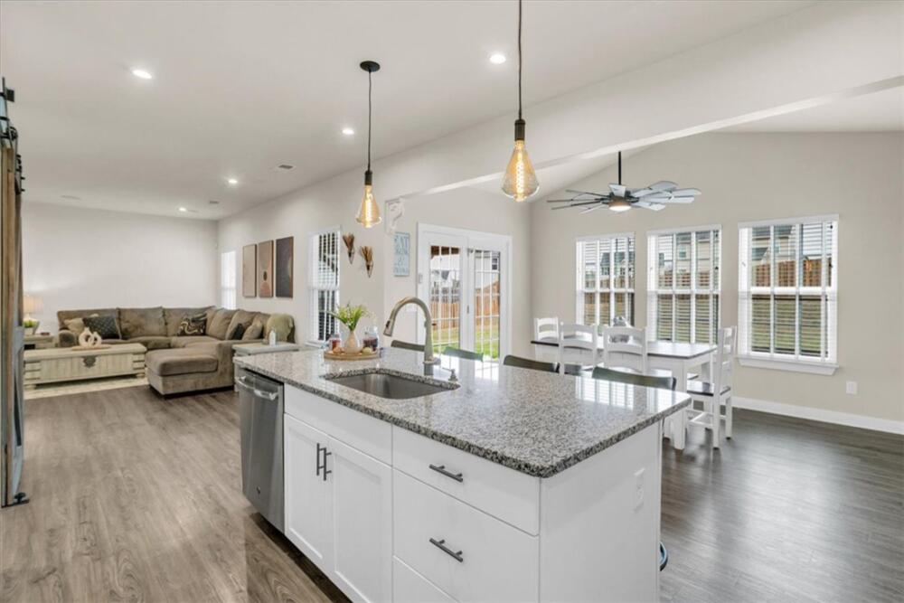 From the moment you step inside, you will notice how bright and pristine 307 Vicksburg Drive feels, with abundant natural light and a fresh, well-kept interior that creates an inviting first impression. Built in 2018 and beautifully maintained, this property offers comfortable, well-designed living spaces, quality finishes, and a location that makes daily life easy—just 15–20 minutes from downtown Greenville. Step inside to an open-concept layout designed for both everyday living and entertainment. The stunning white kitchen features granite countertops, a large island, stainless steel appliances with a gas cooktop, eye-catching backsplash, and an oversized pantry complete with a coffee bar. The kitchen flows seamlessly into the spacious living room, highlighted by a beautiful accent wall that adds warmth and character, along with a bright morning room/dining area. A versatile flex room on the main level provides the ideal space for a home office, playroom, or additional living area. Upstairs, you will find three additional bedrooms and a generous loft, offering plenty of room to spread out. The huge primary suite is a relaxing retreat with a trey ceiling, custom walk-in closet system, dual vanities, and a large walk-in shower. Outdoor living is just as inviting, with a covered back porch overlooking a fully fenced backyard featuring privacy fencing, a custom shed with built-in shelving, and solar lighting along the fence—creating a cozy ambiance for relaxing evenings or entertaining guests. This home has been meticulously cared for and includes custom blinds, designer ceiling fans in all bedrooms, pendant lighting in the kitchen, ceiling speakers in the living room, an epoxy-coated garage floor, smart garage door opener, in-ground sprinkler system, wired alarm system, and a French drain along the side of the home. The garage was extended an additional two feet during construction for added space and functionality. Located in the quiet, established community of The Oaks at Shiloh Creek, near shopping, dining, and schools, this move-in ready home stands out for its easy access to I-85—making commuting and travel a breeze.