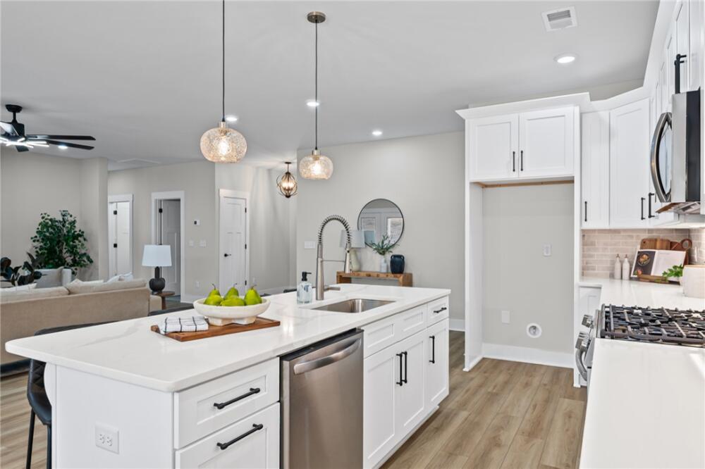 Lake Hartwell Retreat with Stunning Golf Course Views – Brand New & Beautifully Designed Welcome home to a brand-new custom residence offering the perfect blend of elegance, comfort, and resort-style living. Ideally situated on a 1/2 acre lot with breathtaking golf course views, this thoughtfully designed one story home is located in the highly sought-after Stone Creek Cove community with Lake Hartwell access. Completed on October 1, 2025, this exceptional home features 4 bedrooms plus a dedicated office, 3 full bathrooms, and a 2-car garage, all wrapped in quality craftsmanship and modern convenience. The split floor plan, with two bedrooms on each side of the home, provides an ideal balance of privacy and functionality for family, guests, or multigenerational living. Light-filled living spaces are designed for both everyday comfort and effortless entertaining. Expansive windows frame panoramic golf course views, while the living and dining areas flow seamlessly together to create a warm, inviting atmosphere. The kitchen remains a distinct yet accessible space, perfectly positioned for both hosting and daily living. Enjoy outdoor living at its best on the covered front and back porches—perfect for morning coffee, evening relaxation, or simply taking in the peaceful golf course backdrop right in your backyard. No expense was spared in this custom-built home, featuring: - 2x6 construction for enhanced durability and efficiency - Ceiling fans and blinds throughout - Tankless gas water heater for energy savings - Quality finishes and thoughtful design details throughout Stone Creek Cove offers an unbeatable lifestyle with amenities that make every day feel like a getaway, including: - 9-hole golf course membership (included with HOA) - Swimming pool and clubhouse - Lake Hartwell water access - Designated boat and jet ski storage If you’ve been dreaming of a new construction home that blends luxury, comfort, and an active lake-and-golf lifestyle, this one is a must-see. Schedule your private showing today and experience Lake Hartwell living at its finest.