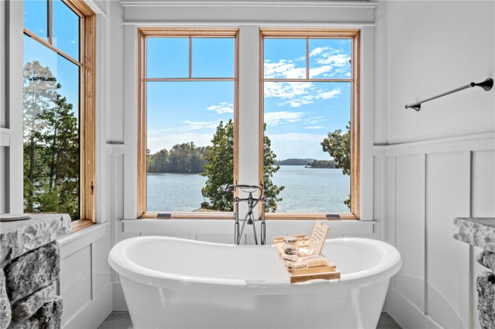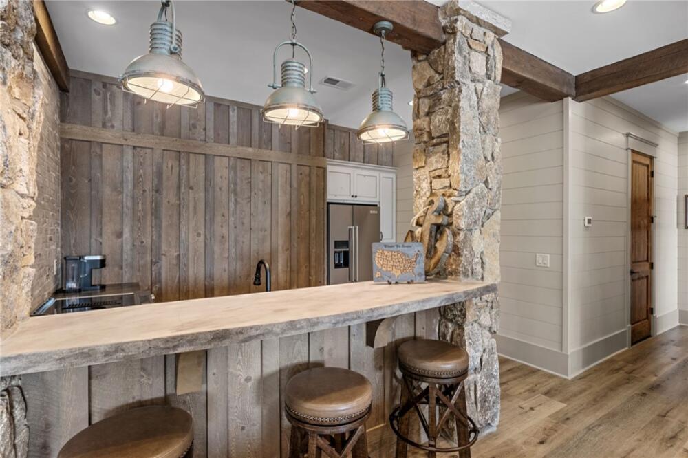 Defining lakeside luxury, this custom-built residence on one of The Reserve’s finest properties embodies exceptional craftsmanship and stands among the most prestigious real estate on Lake Keowee. Handscraped timber, vaulted ceilings, a cut stone floor-to-ceiling stone fireplace, and infinite Lake Keowee views from almost every room capture the utmost of Modern Mountain style. Rustic elegance is highlighted by exposed solid wood beams, while Pella bi-parting sliding doors seamlessly connect the interior to the surrounding outdoor living areas and natural beauty. LED ambient lighting and curated reclaimed wood accents enhance the ambiance, while nearly every room captures west-facing views of Lake Keowee’s shimmering turquoise waters, with the ability to tone the sunlight using automatic blinds on both levels. An open-concept gourmet kitchen features Thermador appliances, an oversized honed quartz island with custom cabinetry underneath and granite countertops. A paneled, commercial style refrigerator and freezer, gas cooktop, and apron-front Elkay farmhouse sink combine a sophisticated and rustic style. The fully equipped butler’s pantry includes a Thermador double oven, ice maker, built-in convection microwave, plenty of shelving and distinctive saloon-style pantry doors and counters for ample prep space. Seamlessly blending indoor and outdoor living, the grilling deck is located just off the kitchen and is fully equipped for outdoor culinary experiences, featuring a Coyote flat-top grill, a Memphis Grills Built-in Pellet grill, Big Green Egg, and a retractable door leading to the seating area. Composite wood decking and cable rails extend throughout the outdoor spaces, which include an outdoor fireplace, retractable screens and vinyls, and a MantleMount motorized TV mount brings the TV to eye-level. In addition, a retractable vinyl enclosure in a space with HVAC heating and air conditioning allows for this outdoor living area to be enjoyed year-round while overlooking the glistening lake. As you enter the primary bedroom, you’ll be captivated by water vistas spanning across the lake, creating an awe-inspiring setting where vaulted ceilings with stained tongue-and-groove soar, and walk-out patio access seamlessly captures the lake’s grandeur. Custom shelving is throughout the walk-in closet for functionality. Dual vanities and a soaking tub are illuminated by natural light, with unobstructed lake views, heated floors and a reclaimed-wood-inspired tile shower for an opulent, spa-like experience. The lower level offers a second fully equipped kitchen, complete with KitchenAid appliances, and an open entertainment space framed by a stone fireplace and custom shelving. Two bedrooms are located on this level, one being an ensuite, and the other a built-in bunk room with custom four-bed bunks with built-in drawers. Lake access is effortless. Just steps from the water, a covered outdoor patio with a fireplace and storage for lake toys is complemented by an outdoor shower to enhance lake living. The gently meandering golf cart path connects each outdoor area to over 250 feet of pristine waterfront shoreline and a private dock, with all the features (boat lift, PWC lift, water, etc) one would expect from a home of this value. Additional lower-level features include a lake room with a 2nd washer and dryer, 2 storage areas with epoxy floors, a 3-car garage with built-in cabinets. Ascending to the upper level, a coated re-bar railing provides the very durable feeling on top of solid oak treads almost 4†thick. One can also utilize the elevator for effortless access to all floors. The upper level features an additional oversized ensuite bath with a walk-in rain shower and closet. A private in-home gym and sauna, along with a full bath, provide the ultimate in relaxation and wellness. An Old Edwards Reserve Premier membership is available for separate purchase, granting access to Lake Keowee’s most beautiful amenities.