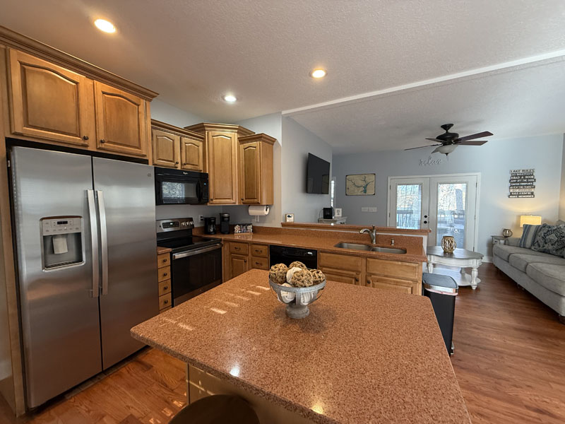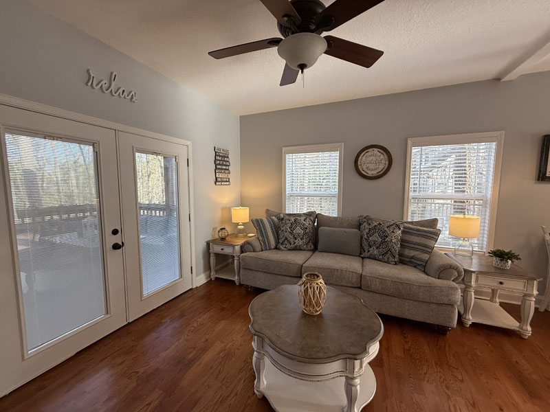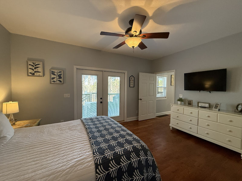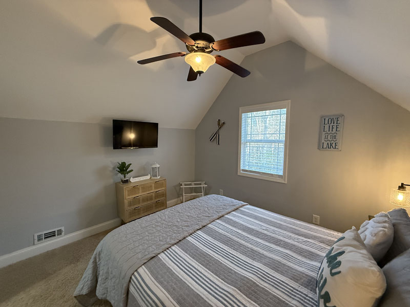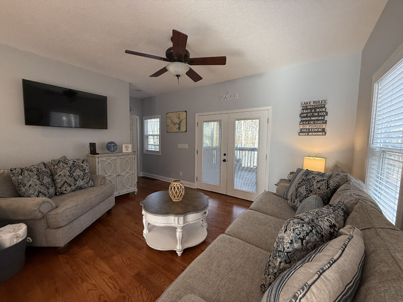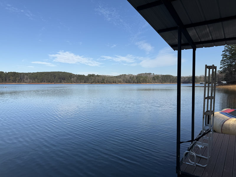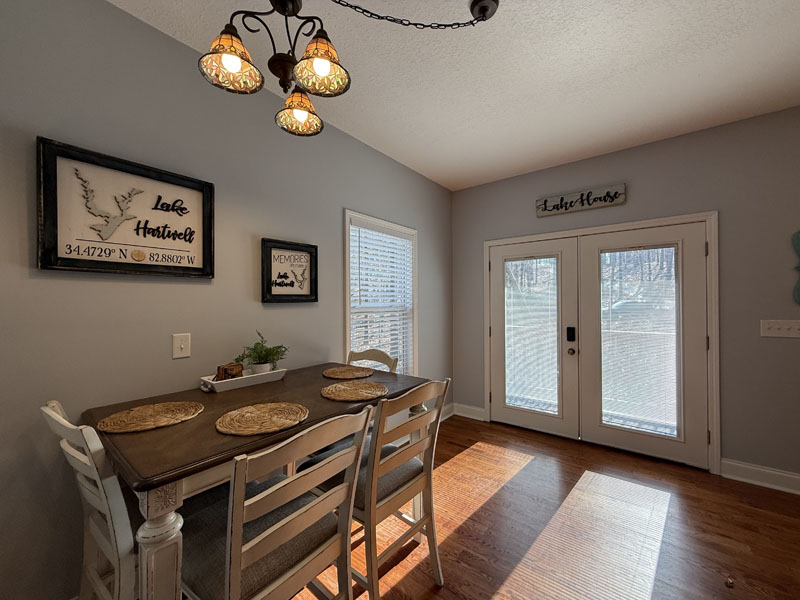 This great Lake Hartwell home is being sold turnkey with all of the furnishings and screened porch furniture included in the sale. It is sited on a one acre lot near the Currahee Club. The front porch welcomes you to the great room which is adjacent to the granite kitchen with island and stainless steel appliances and the dining area. This room opens onto a screened porch overlooking the lake and connects to an open grill deck. The owner's suite is on the main level and includes a bath with double vanities and a walk-in closet. This level also has the laundry area and another half bath. Upstairs, there are two bedrooms and a full bath. You will also find a flex area suitable for an office, exercise or additional sleeping. There is a concrete path that leads to the covered slip dock on one of the lake's main channels (Tugaloo).
