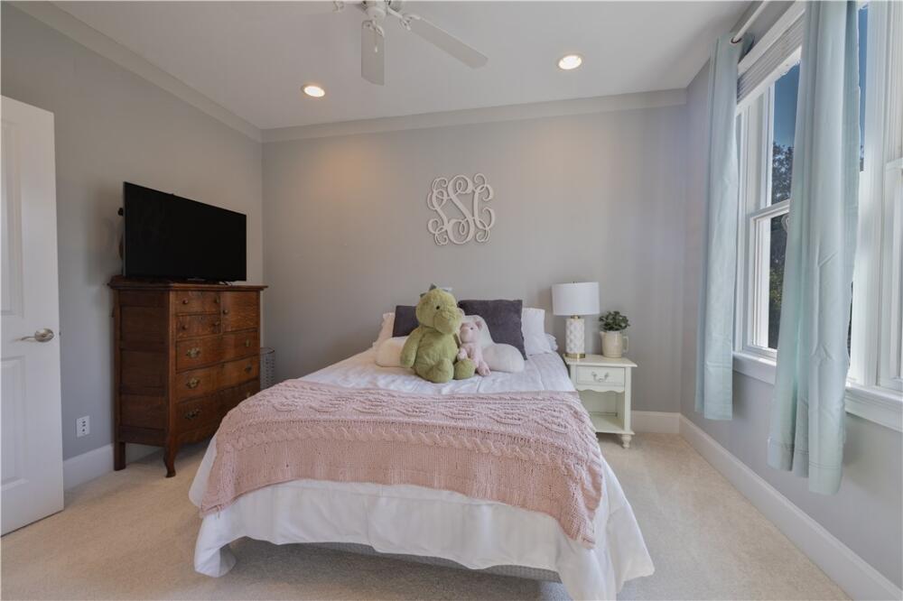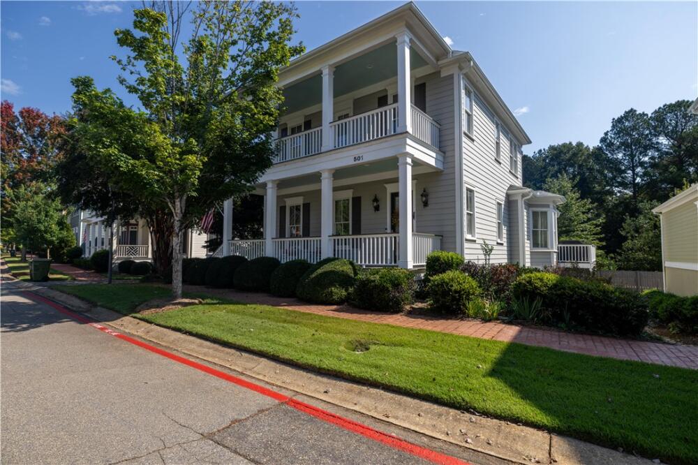 Beautifully maintained 4Bed/4.5Bath home in sought-after Village Walk, offering impressive curb appeal with a wide Southern-style front porch and well-manicured landscaping. Inside, the main level features a spacious open-concept layout with high ceilings, hardwood floors, recessed lighting, a cozy fireplace, elegant crown molding, and an abundance of natural light. The living, dining, and kitchen spaces flow seamlessly with the breakfast nook opening to the back deck – ideal for both easy indoor-outdoor entertaining and everyday living. The main-level primary suite features two closets plus a linen closet and a spacious bath with dual vanities, a glass enclosed tile shower, and generous storage. Also on the main floor are a private office with French doors, a half bath, and laundry room equipped with utility sink and custom cabinetry. The upper level has brand new carpet and includes a loft, an ensuite bedroom with private bath, and two additional bedrooms with a connecting bath and access to the upper balcony. The finished basement adds versatile living space showcasing a custom brick bar with wood countertop, full bath, and storage space – the perfect set up for an entertaining game room, lounge, or media area. Recent upgrades (September 2025) include TWO brand-new Trane HVAC units! Enjoy Village Walk’s top-notch amenities, including a community pool, clubhouse, pickleball court, sidewalks throughout, green spaces, & lawn maintenance (full service including community irrigation, trimming, mulch, etc). Located within walking distance to Clemson Elementary, under a mile to various shopping and dining, and only 5 minutes to Clemson University.