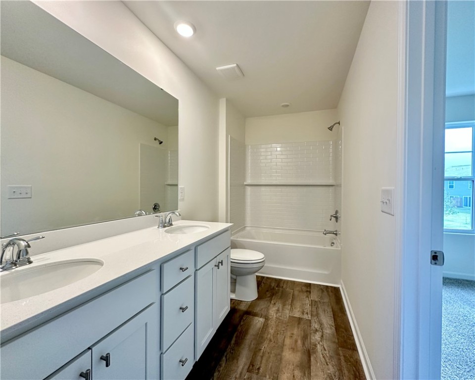 Brand New Belmont B6 floor plan. Welcome to this stunning 3-bedroom, 2.5-bathroom townhouse, the epitome of modern living and energy efficiency! With over 1,500 square feet of thoughtfully designed space, this home offers an open floor plan perfect for comfortable living and entertaining. Step inside to a bright and airy kitchen featuring designer vinyl flooring that seamlessly flows into the spacious living area with lots of natural lighting. The upgraded kitchen boasts granite countertops, a spacious island with the sink, an upgraded Kohler kitchen faucet, and comes equipped with stainless steel ENERGY STAR appliances including an electric stove, dishwasher, and microwave. On the main level, you'll find a convenient powder room and access to your one-car garage. Upstairs, all three spacious bedrooms await, ensuring privacy and tranquility. The primary suite is a true retreat, offering a large walk-in closet, a walk-in shower, dual vanity, and contemporary fixtures. The second floor houses a dedicated laundry room adding convenience to your daily routines. Benefit from the cost-saving tankless gas water heater and the certification from HERS energy testing with a third-party rating for maximum efficiency. This townhouse is part of a vibrant community featuring incredible amenities such as a newly built large private neighborhood pool, a pavilion with two fireplaces, and scenic walking paths that weave through the charming neighborhood landscape. Don't miss this opportunity to own a meticulously designed townhouse in a sought-after community! Schedule your viewing today and step into a lifestyle of convenience, style, and sustainability. *PLEASE NOTE this home is currently under construction. Pictures will be updated upon completion** This home is located in the Champions Village at Cherry Hill Subdivision. **PRICES SUBJECT TO CHANGE WITHOUT NOTICE**
